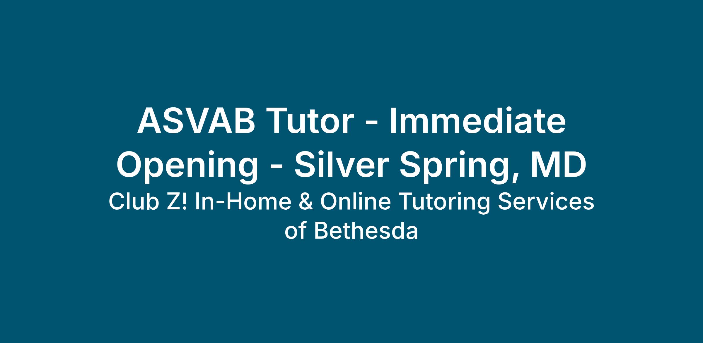 Club Z! In-Home & Online Tutoring of Bethesda is seeking a part-time in-person ASVAB tutor for an immediate opening in Silver Spring, MD