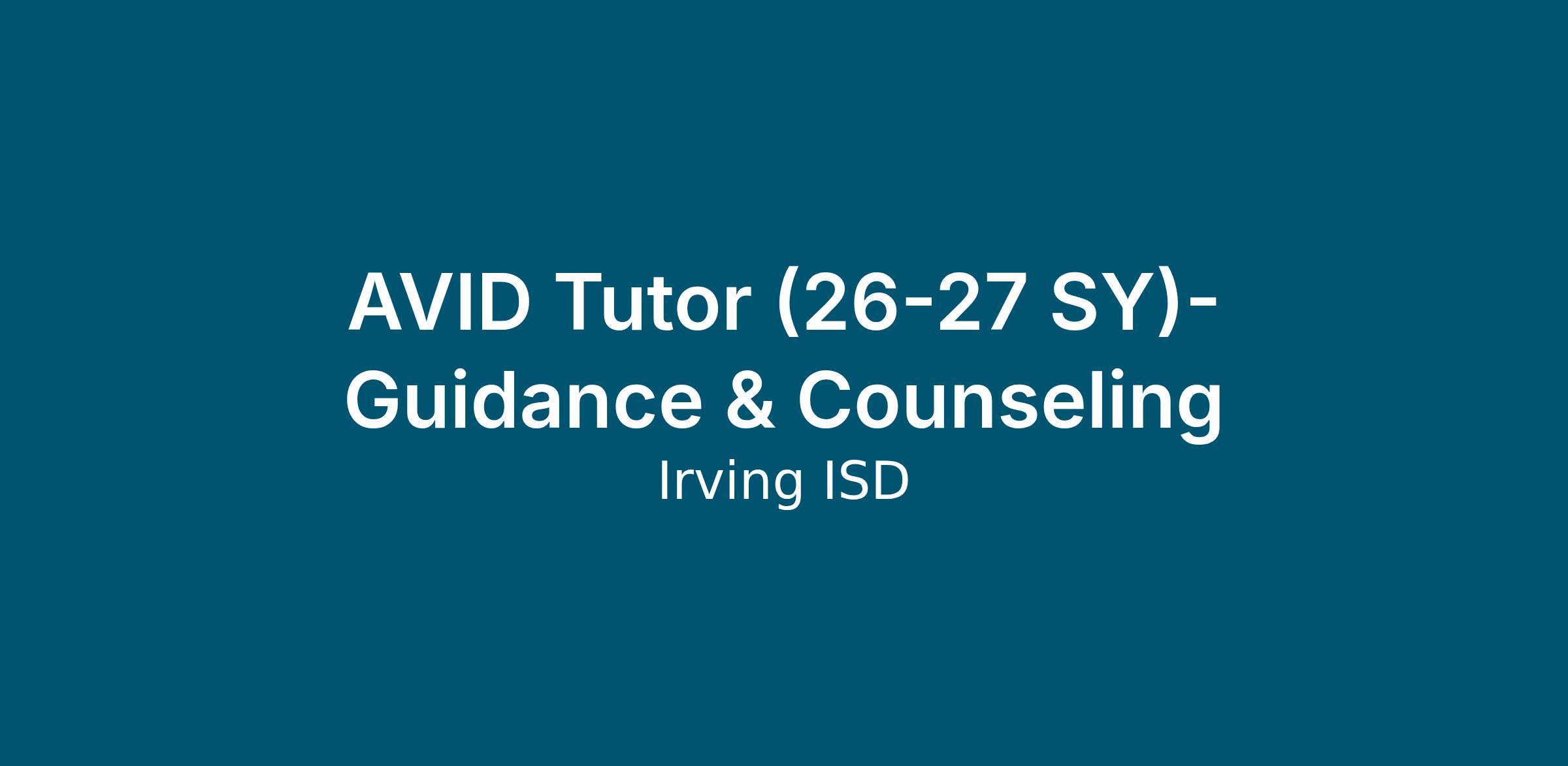 • Successful completion of 16 hours of AVID Tutor Training provided by Irving ISD