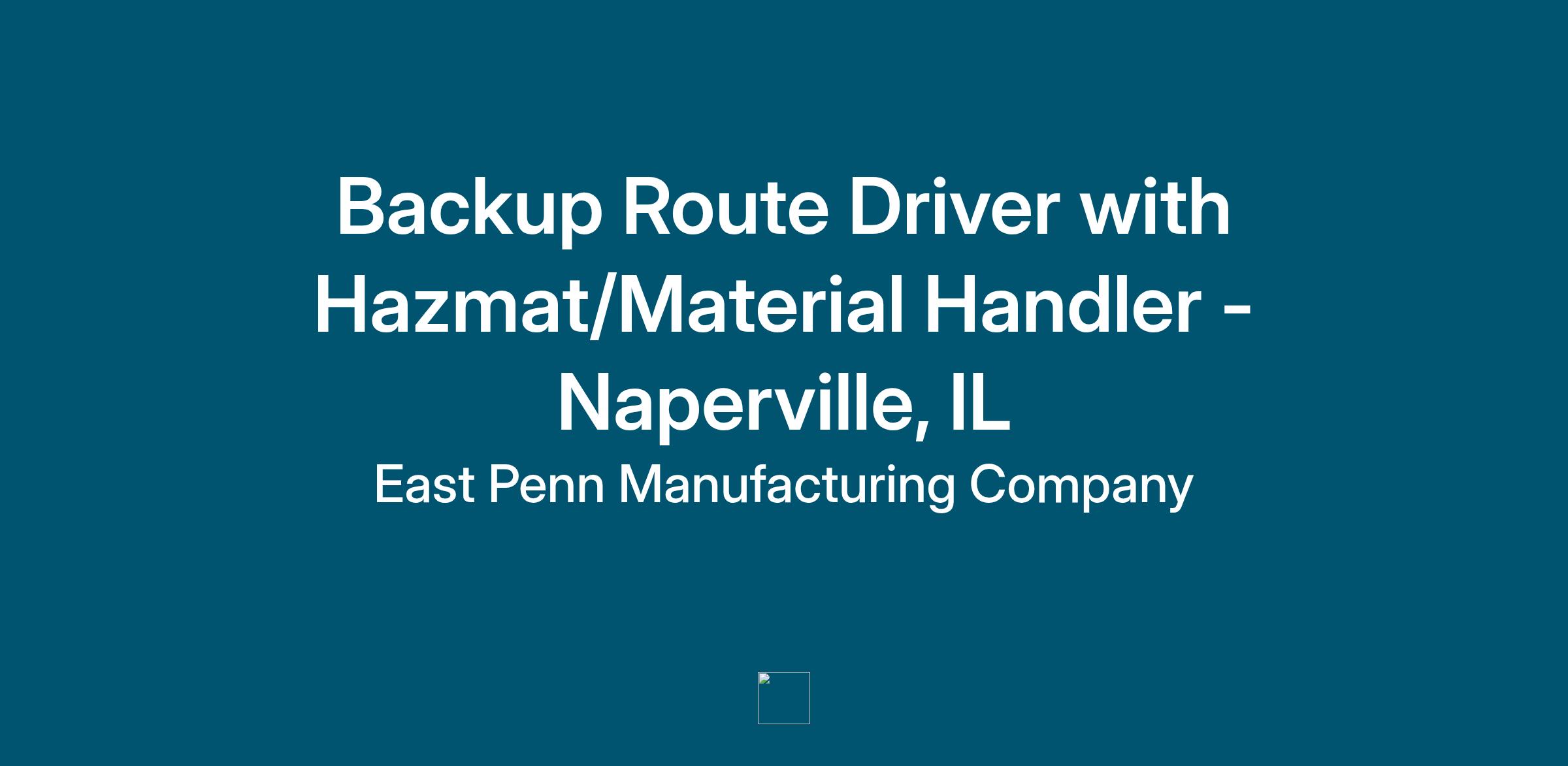 Naperville, Illinois Class B Route Driver with Hazmat Endorsement & Material Handling Duties