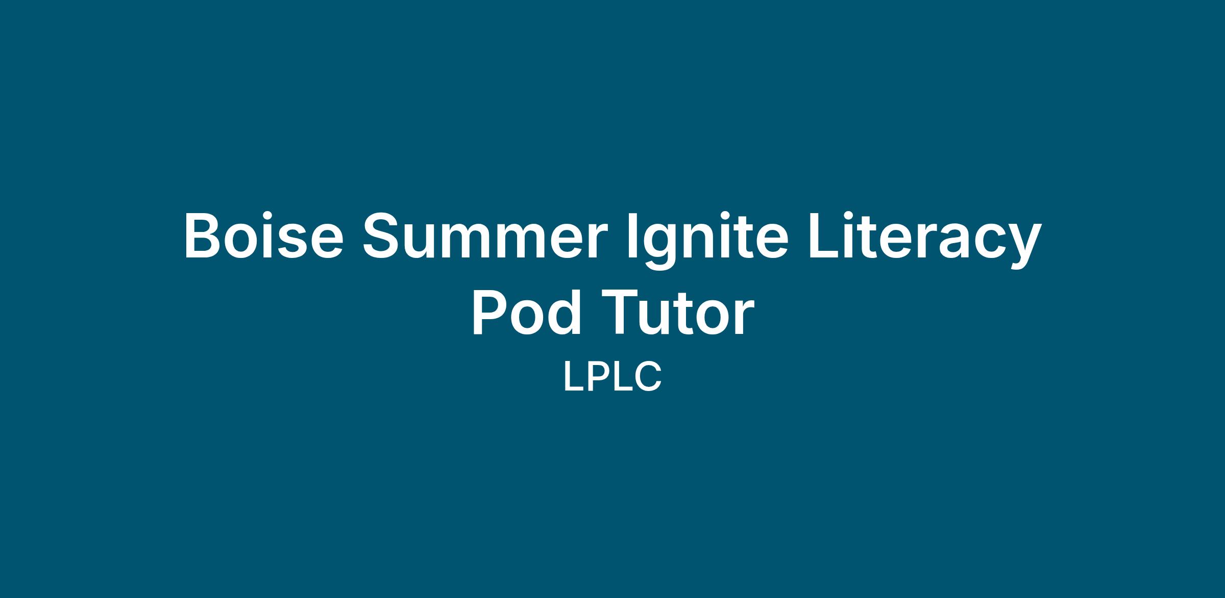 Boise Summer Ignite Literacy Pod Tutor