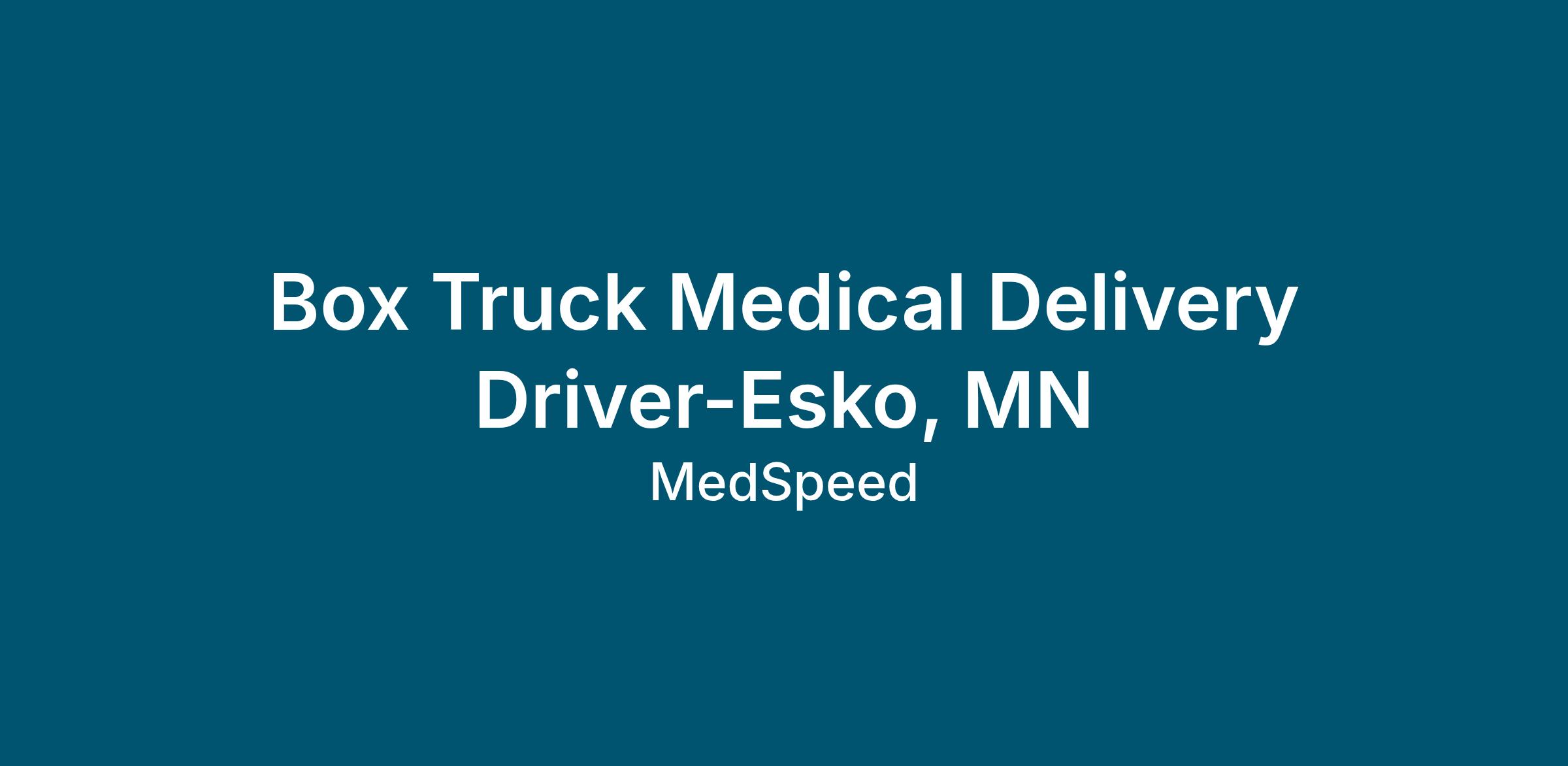 Box Truck Medical Delivery Driver-Esko, MN