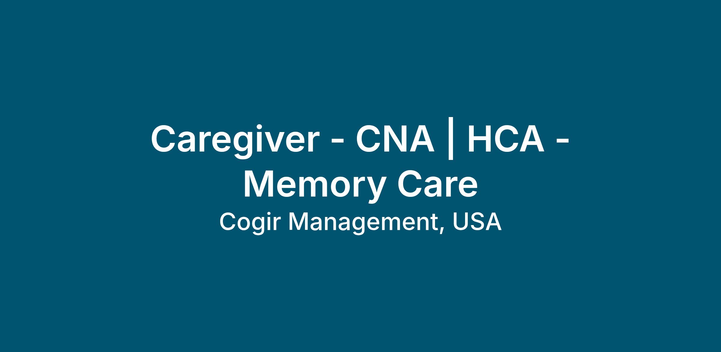 Caregiver - CNA | HCA - Memory Care