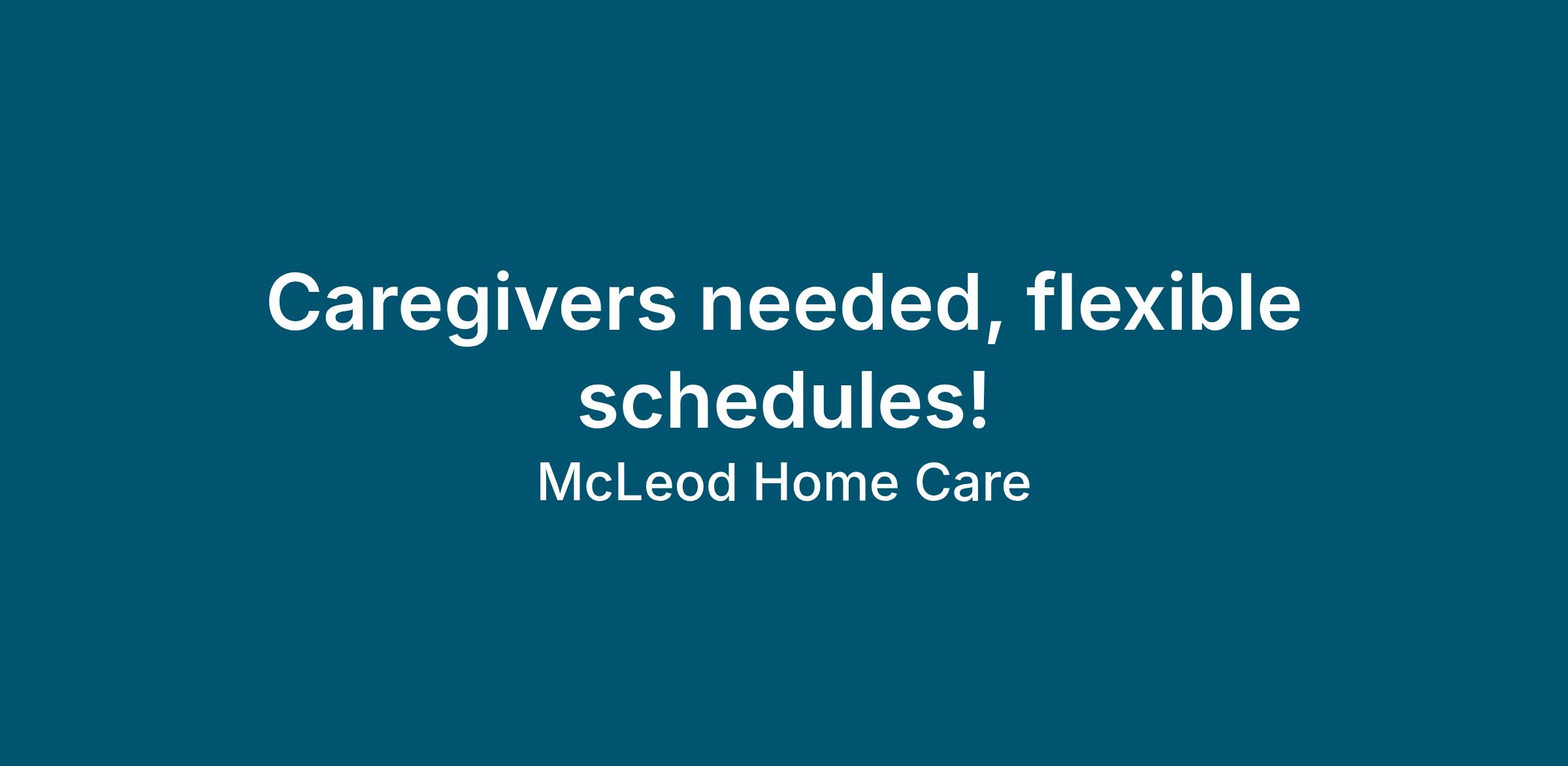 McLeod Home Care is a non-medical home care agency looking for experienced, caring, and compassionate Care Professionals! We have great appreciation for those who put their heart and soul into this work. Apply now to see why 60% of our Care Professionals are referred by our current staff of Care Professionals!