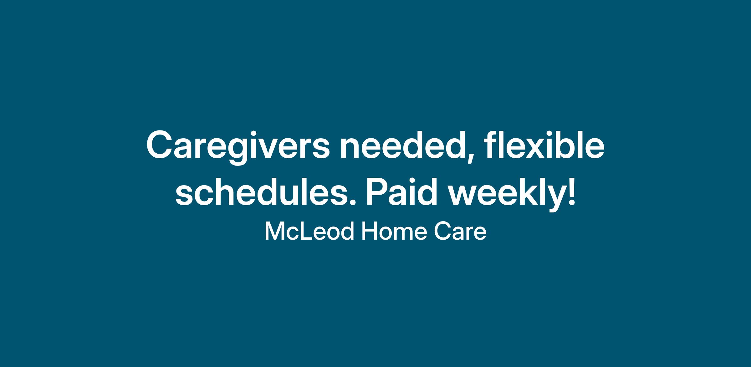 McLeod Home Care is a non-medical home care agency looking for experienced, caring, and compassionate Care Professionals! We have great appreciation for those who put their heart and soul into this work. Apply now to see why 60% of our Care Professionals are referred by our current staff of Care Professionals!