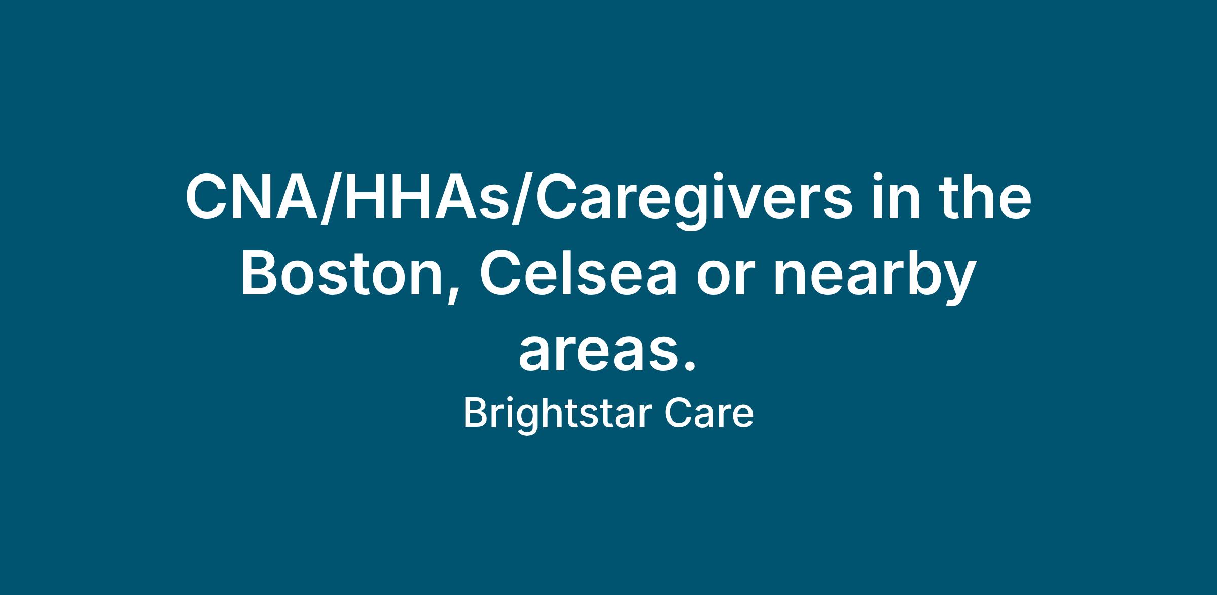 Join Our Compassionate Team at BrightStar Care! We are looking for CNAs/HHAs/Caregivers in the Boston, Celsea or nearby areas. Flexible shifts available based on your availability daytime, evening, overnight