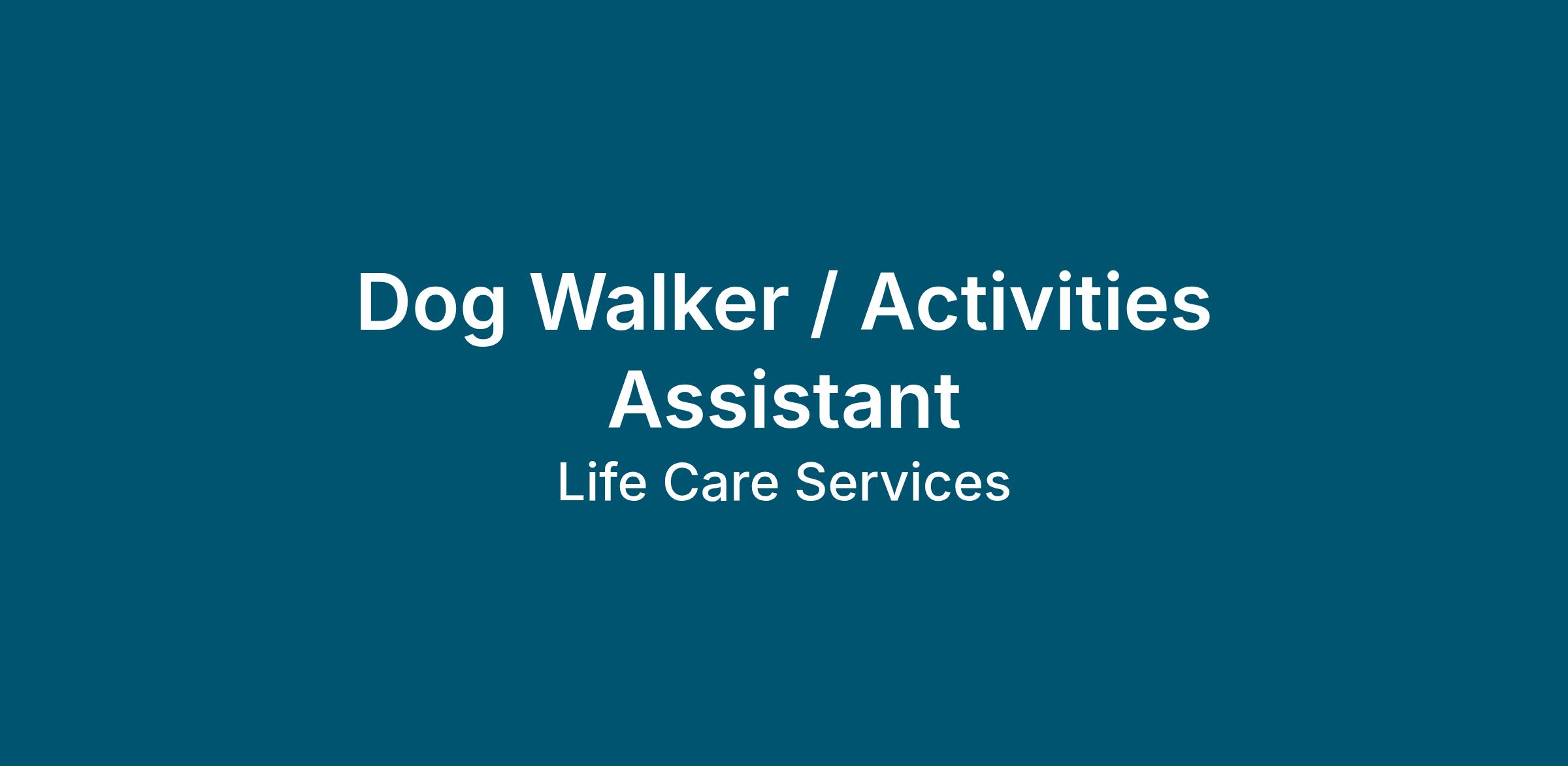 We are looking for a personable and responsible Dog Walker / Activities Assistant to support our senior citizen residents with their pets. In this role you will be responsible for assisting our residents in providing care for dogs and cats, as well as providing other general support for our residents and our activities team.