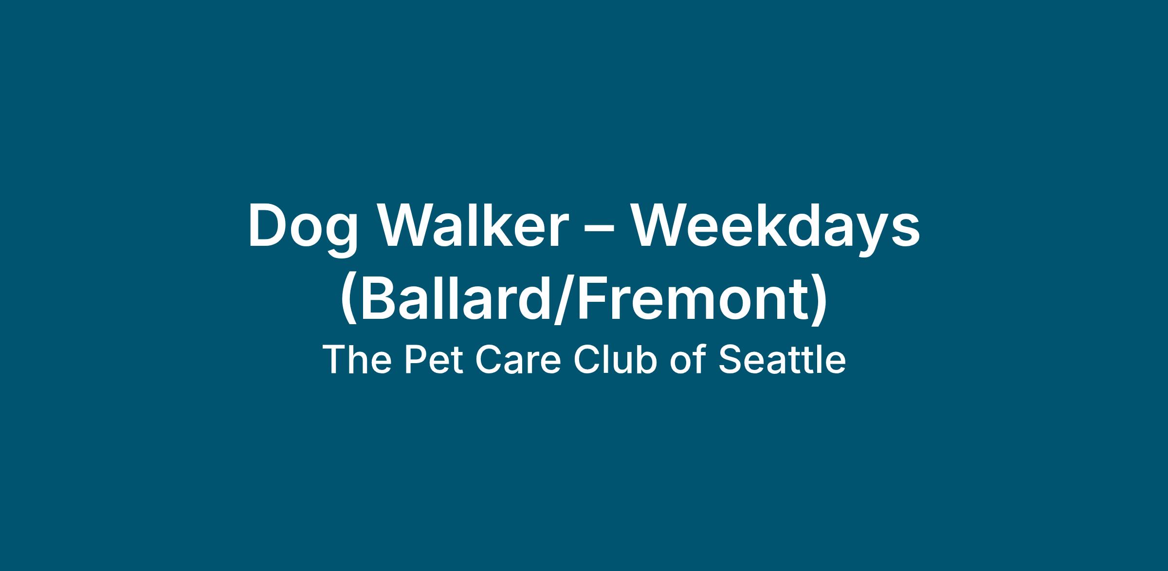 This role is ideal for candidates with weekday availability who enjoy spending time with pets. If this sounds like an ideal part-time position for you, apply today!