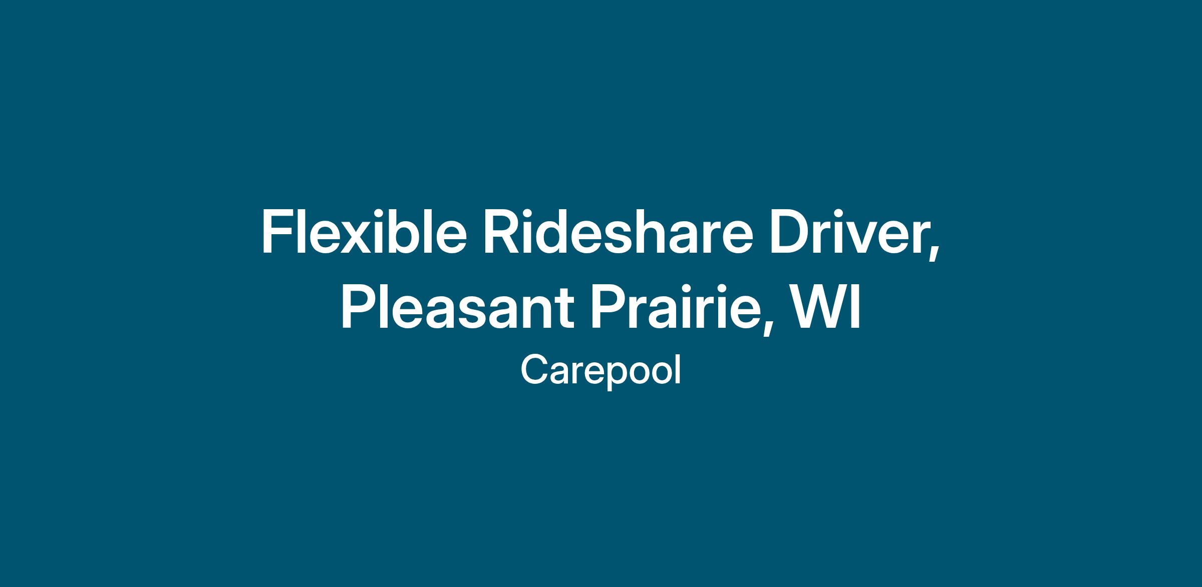 Flexible Rideshare Driver, Pleasant Prairie, WI