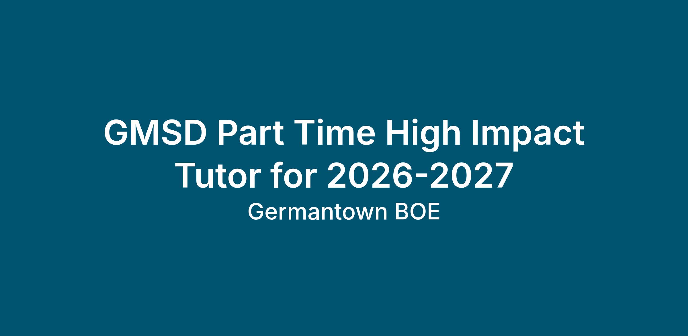 Job Objectives: Germantown Municipal School District's High Impact Reading/Math Tutors are expected to provide the best instructional practices, which ensure students have a quality educational experience evident by socio-emotional growth and academic achievement.