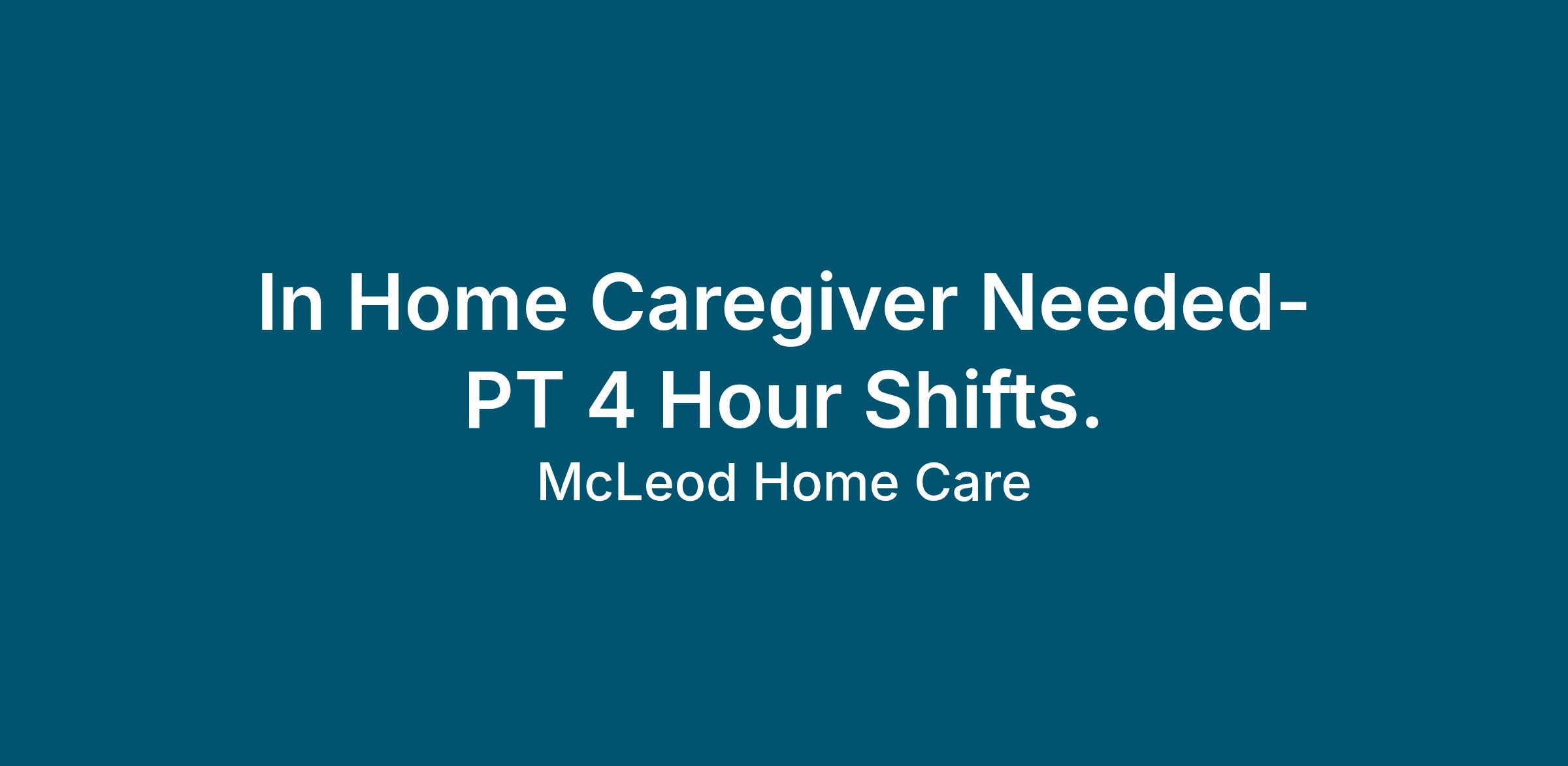 In Home Caregiver Needed- PT 4 Hour Shifts.