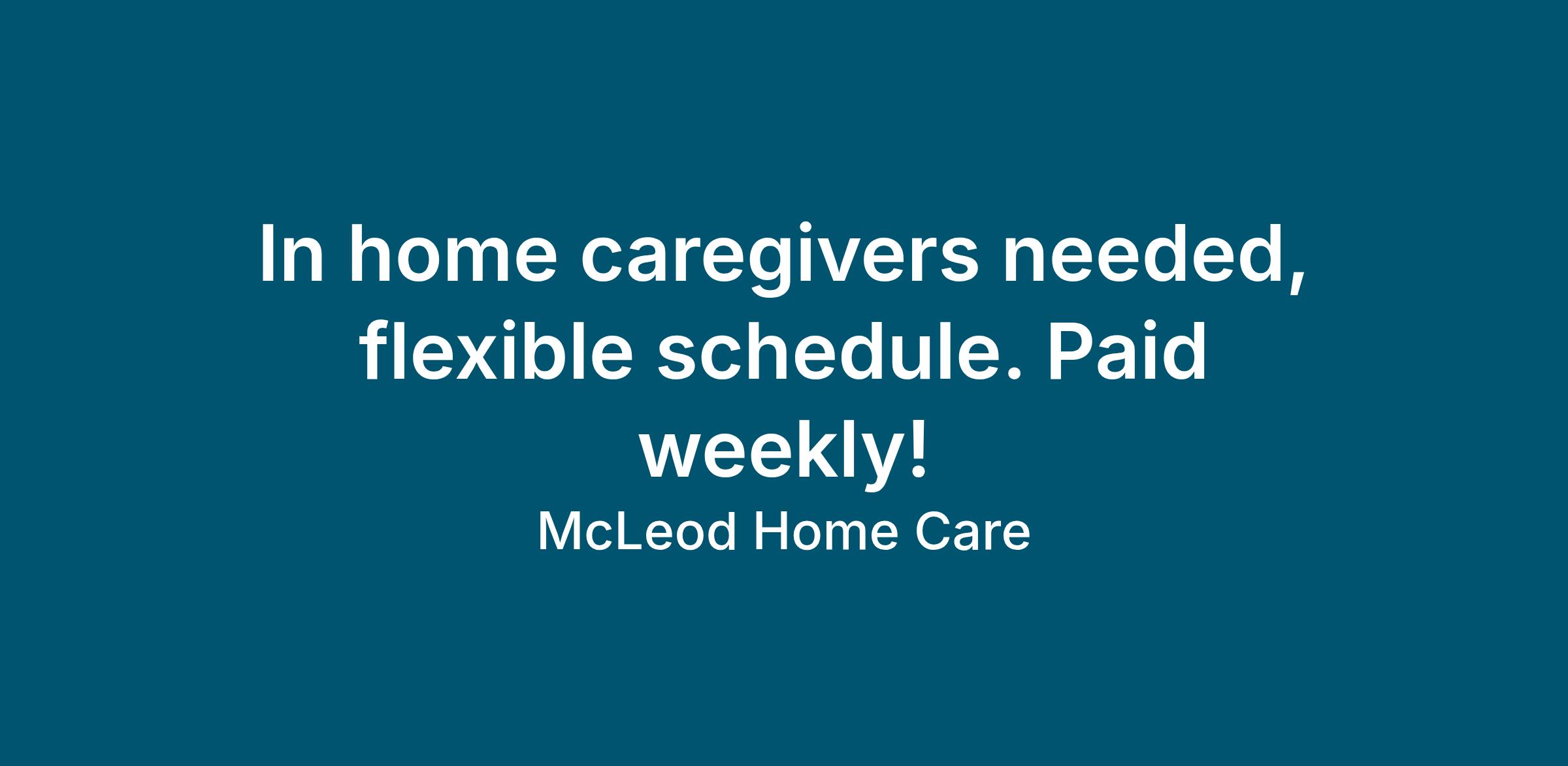 McLeod Home Care is a non-medical home care agency looking for experienced, caring, and compassionate Care Professionals! We have great appreciation for those who put their heart and soul into this work. Apply now to see why 60% of our Care Professionals are referred by our current staff of Care Professionals!