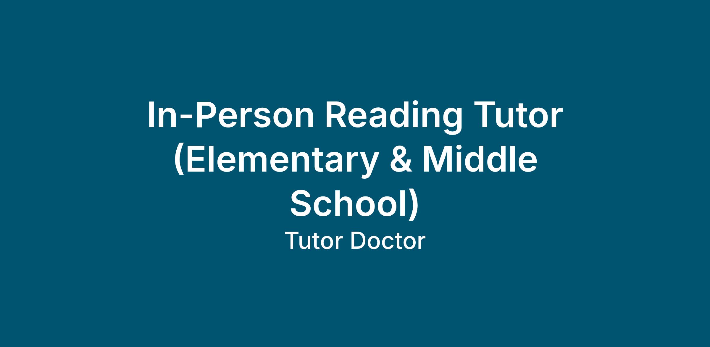 In-Person Reading Tutor (Elementary & Middle School)