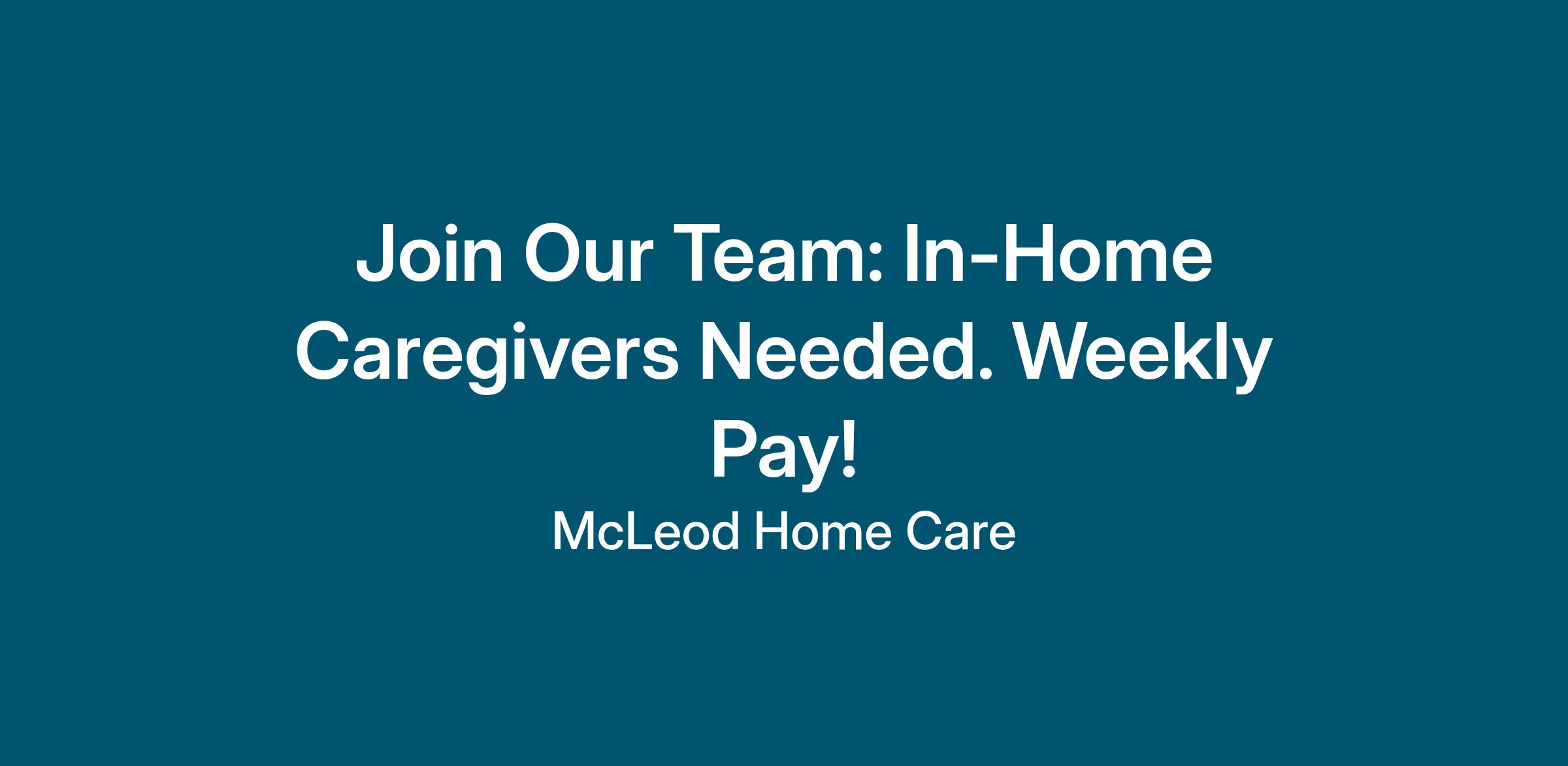McLeod Home Care is a non-medical home care agency looking for experienced, caring, and compassionate Care Professionals! We have great appreciation for those who put their heart and soul into this work. Apply now to see why 60% of our Care Professionals are referred by our current staff of Care Professionals!