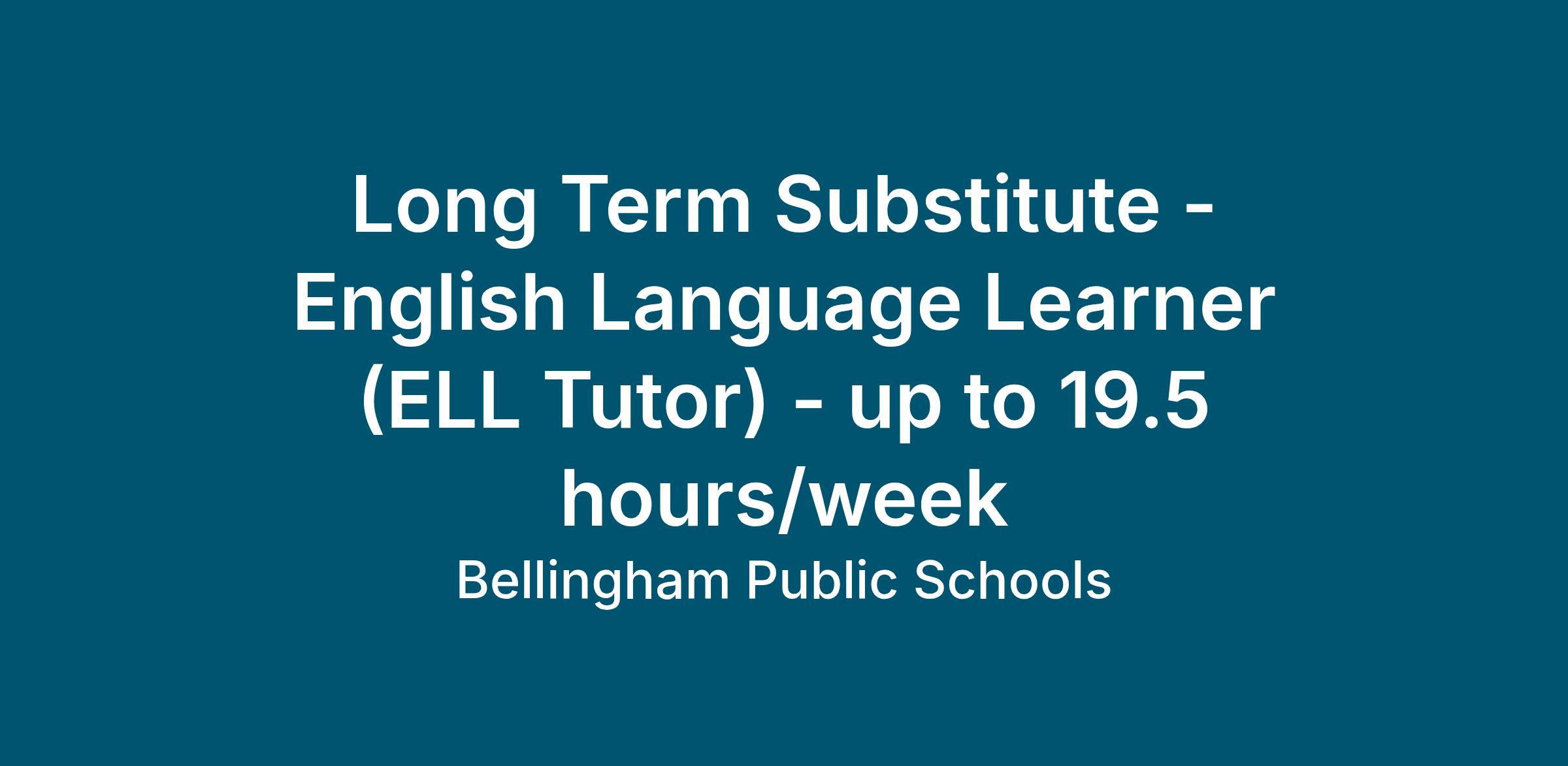 TITLE: Long Term Sub - ELL Tutor (up to 19.5 hours/week)