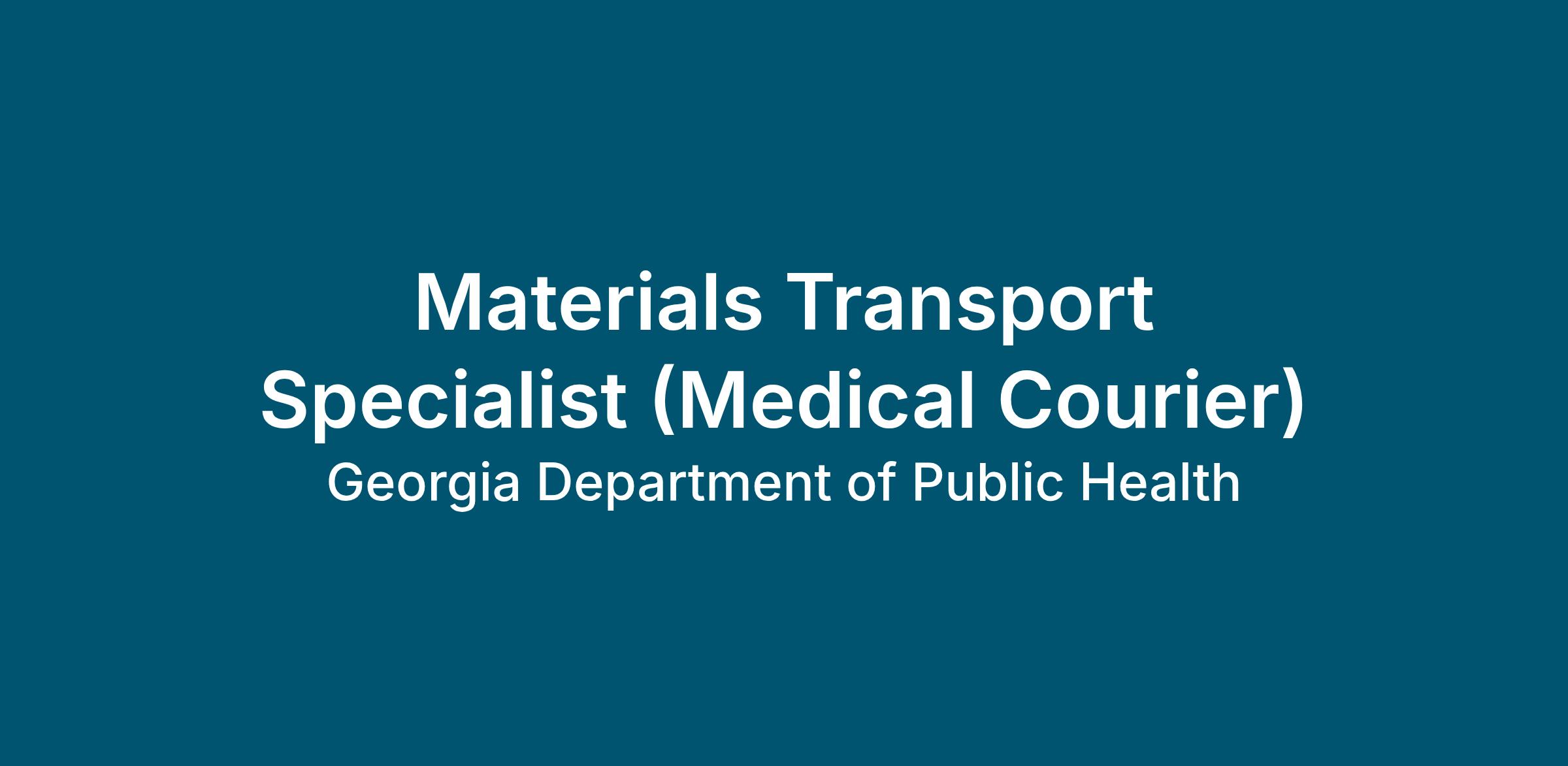 Materials Transport Specialist (Medical Courier)