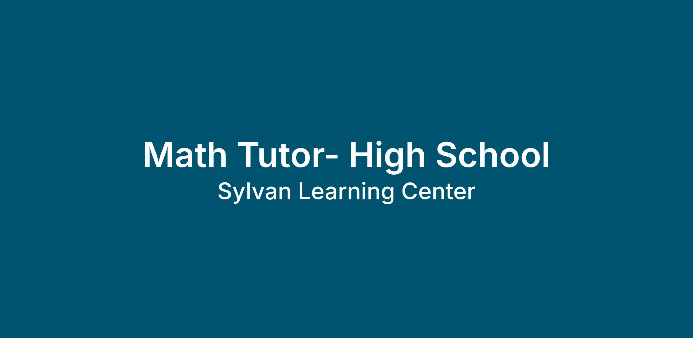 Sylvan Learning Center Fishers As a high school level math tutor in Sylvan’s high performing, individualized learning environment, you’ll see the “light bulb” moments daily. You’ll have the time to teach a concept to a student in as many ways as they need until they understand it. You’ll build students’ skills while building their confidence. You’ll be the difference maker in a student’s life.
