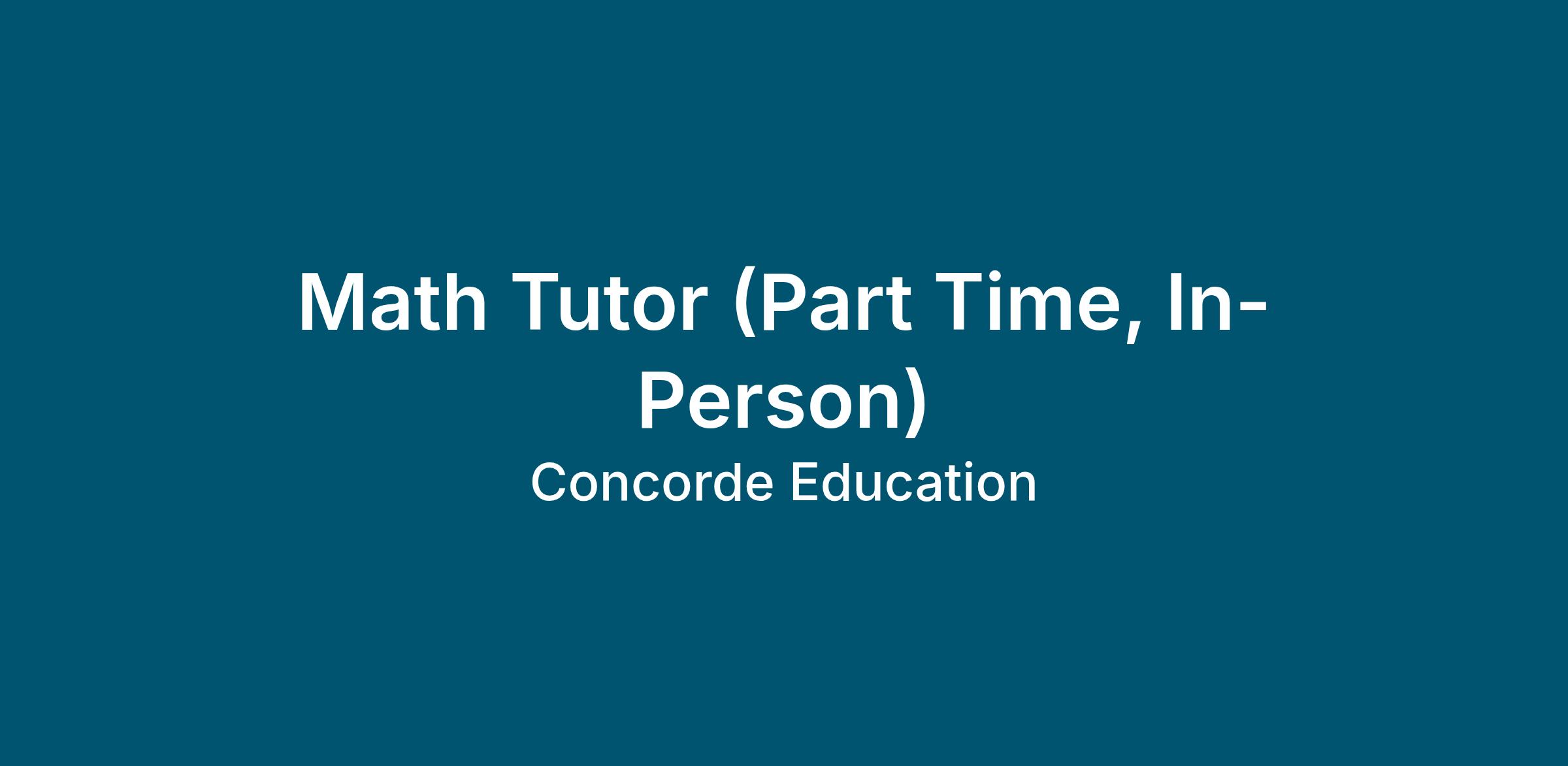 Math Tutor (Part Time, In-Person)