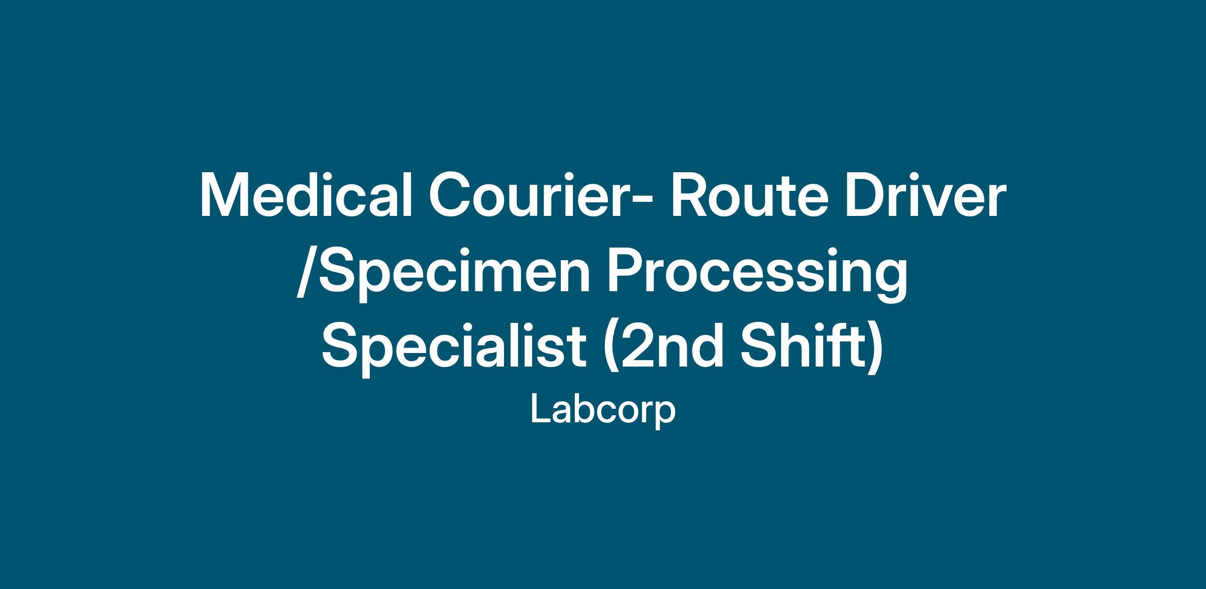 This is a unique role that will split duties between the Courier and Specimen Processing departments. Will work the first half of the shift performing Courier/route driving duties and upon delivery of specimens to the branch, will perform Specimen Processing & Accessioning duties.