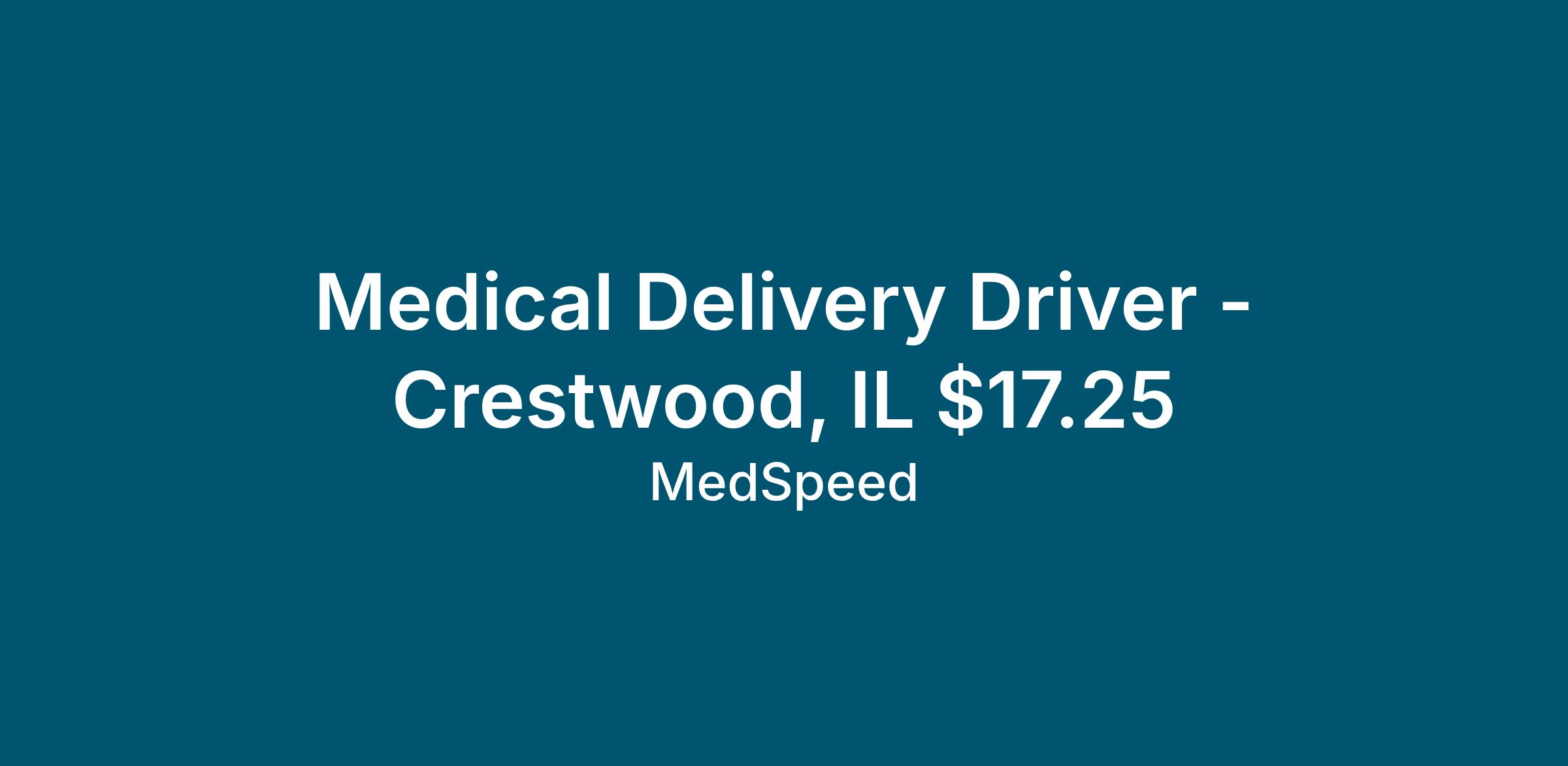 Medical Delivery Driver - Crestwood, IL $17.25
