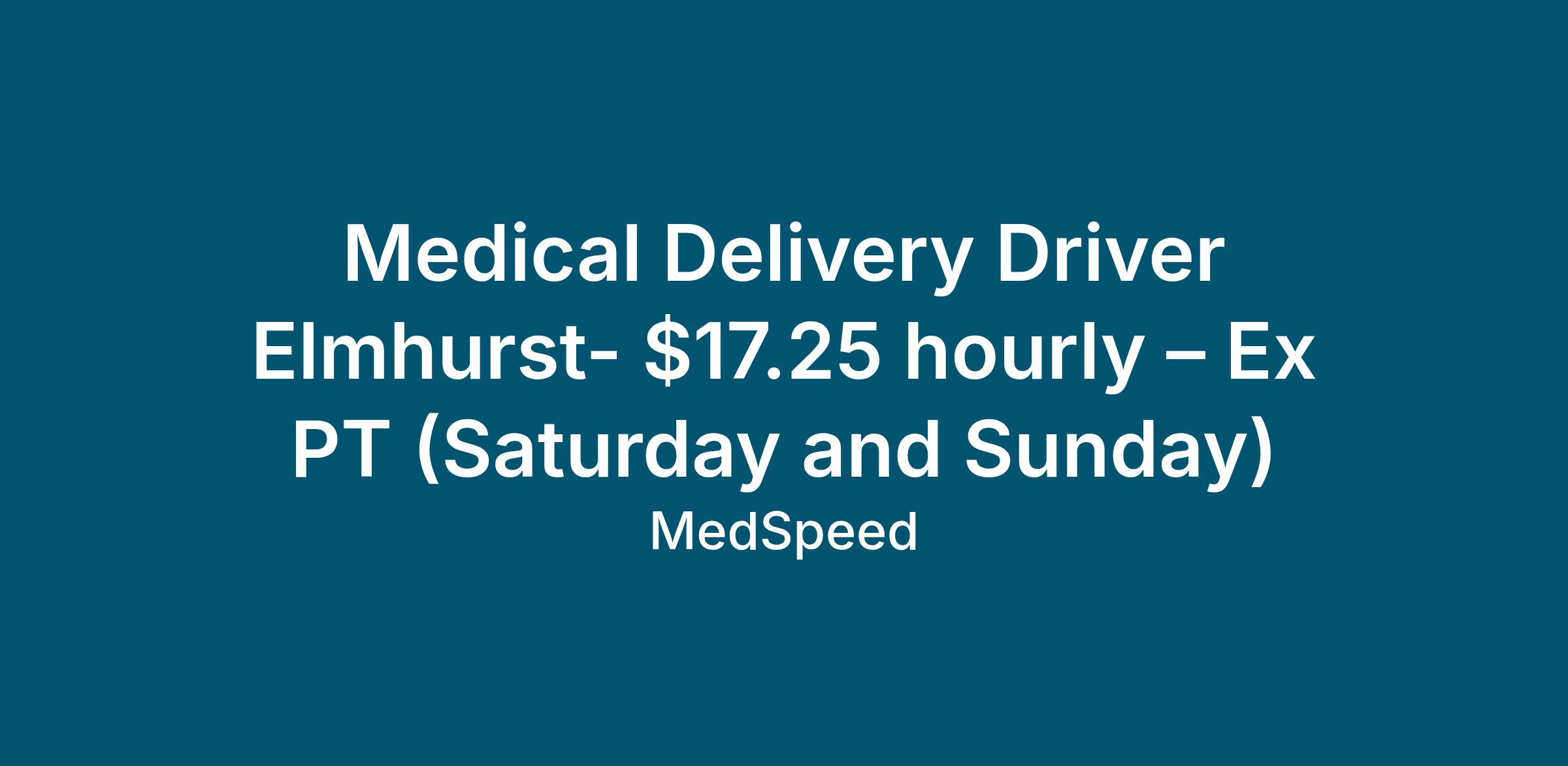 Medical Driver - Elmhurst Saturday and Sunday 9:00am - 5:30pm
