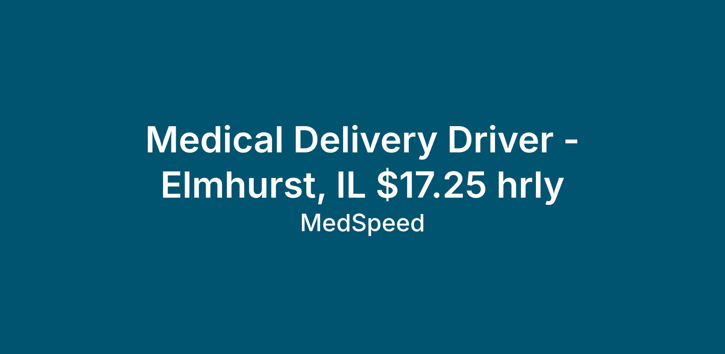 Medical Delivery Driver - Elmhurst, IL $17.25 hrly