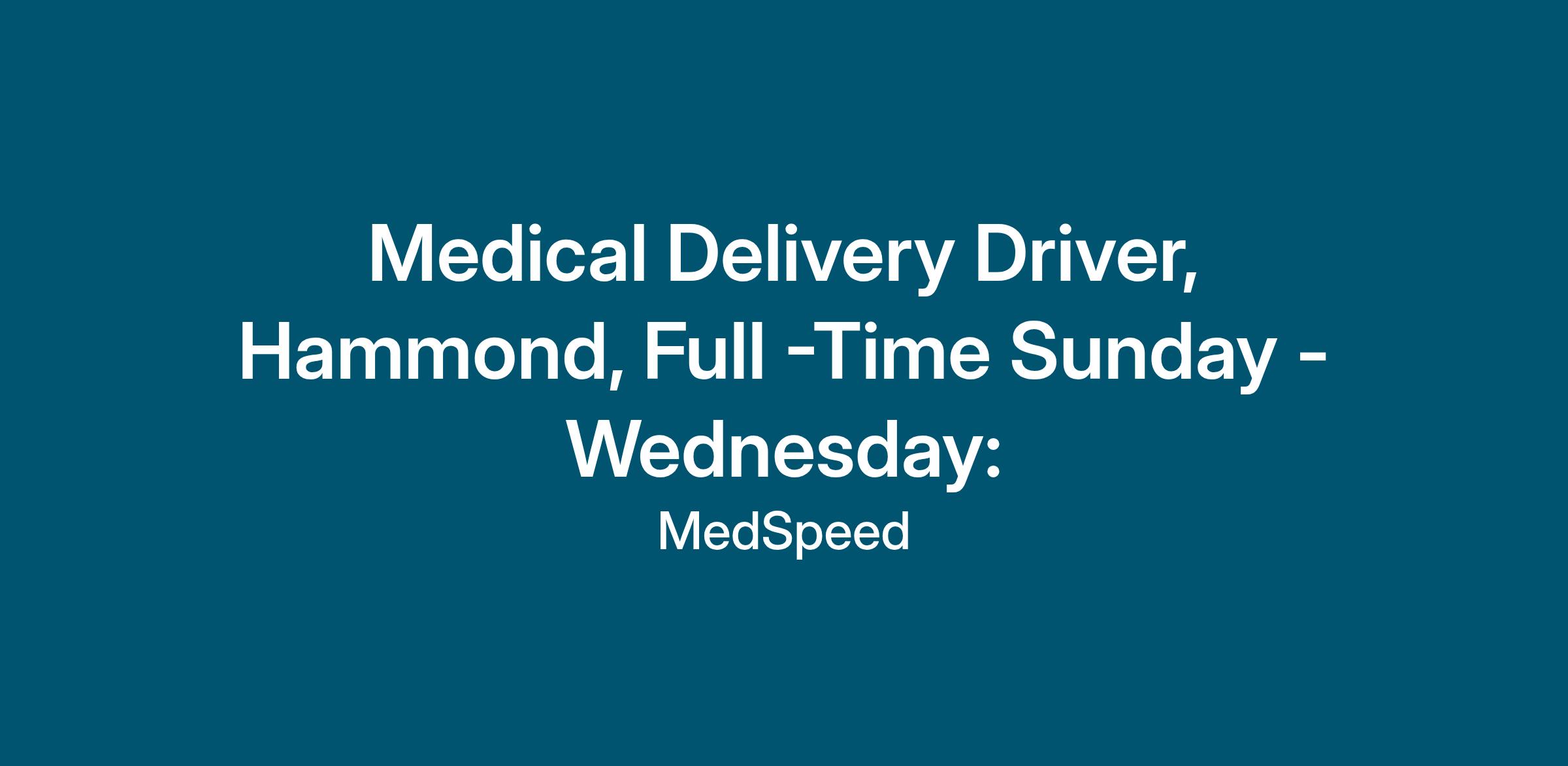 Medical Delivery Driver/LSR - Hammond - Full Time $15.00/hour
