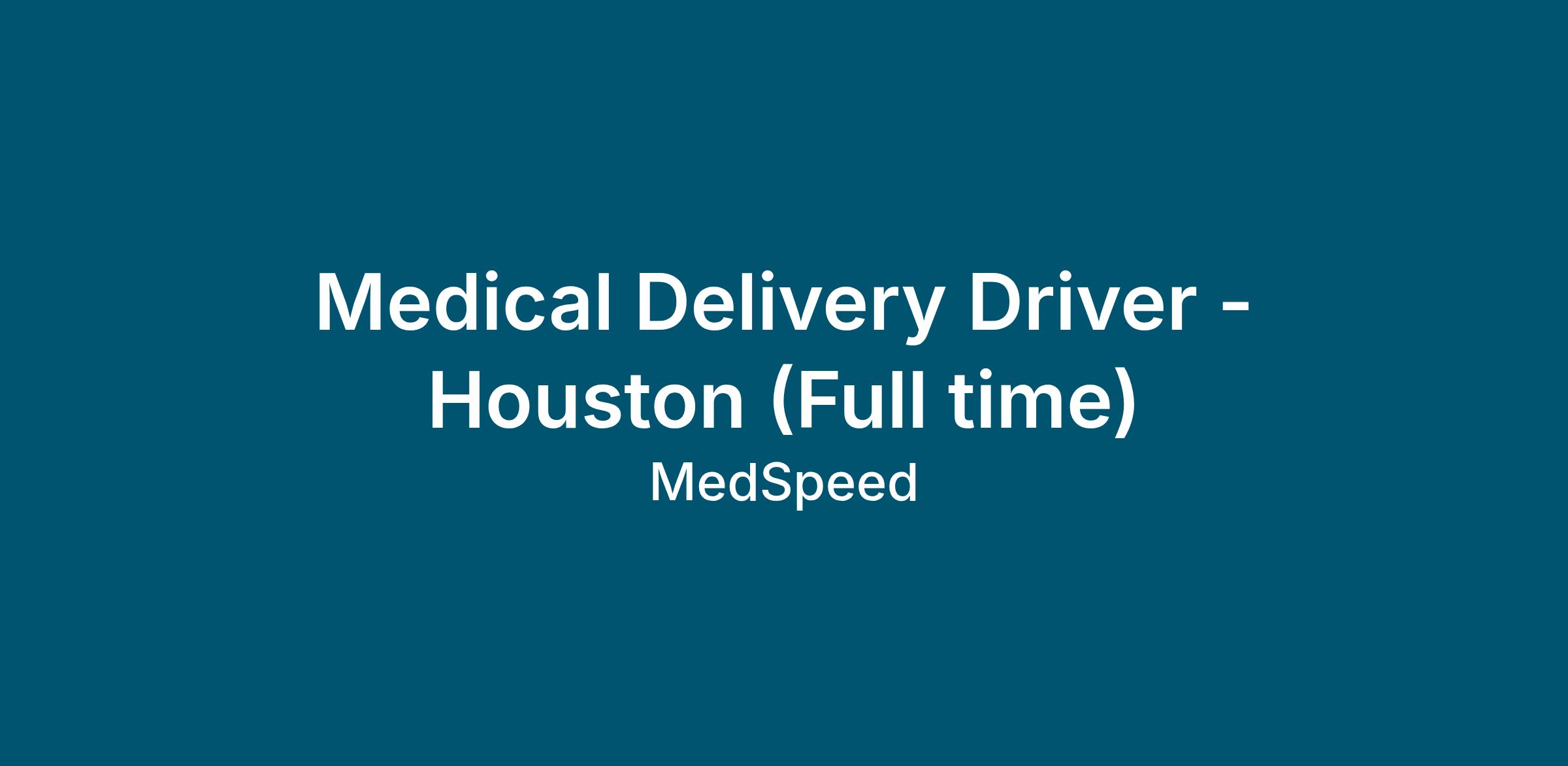 *Please note you will start and end your day from our MedSpeed hub in the Westchase area of Houston daily