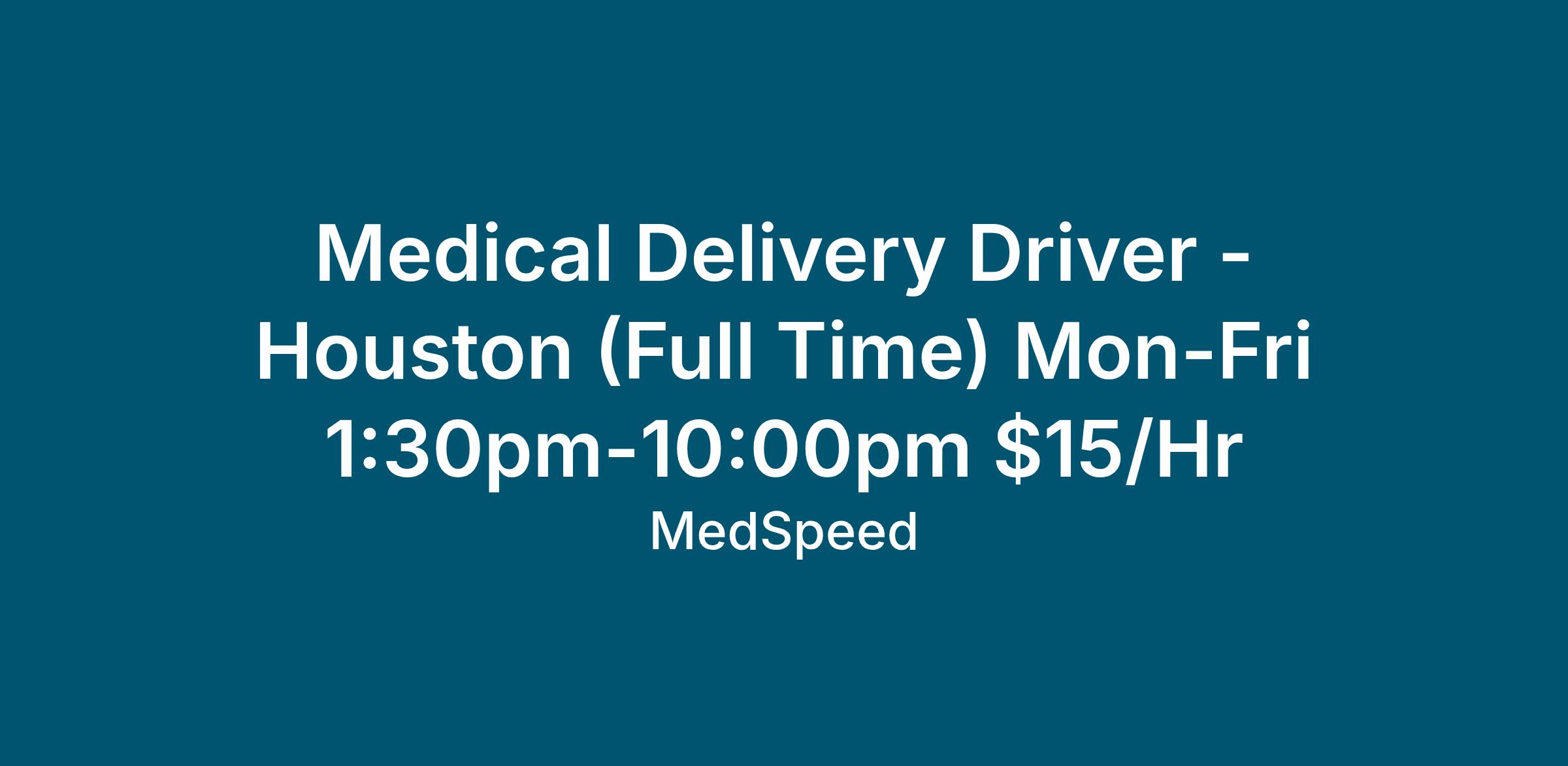 *Please note you will start and end your day from our MedSpeed hub in the Westchase area of Houston daily