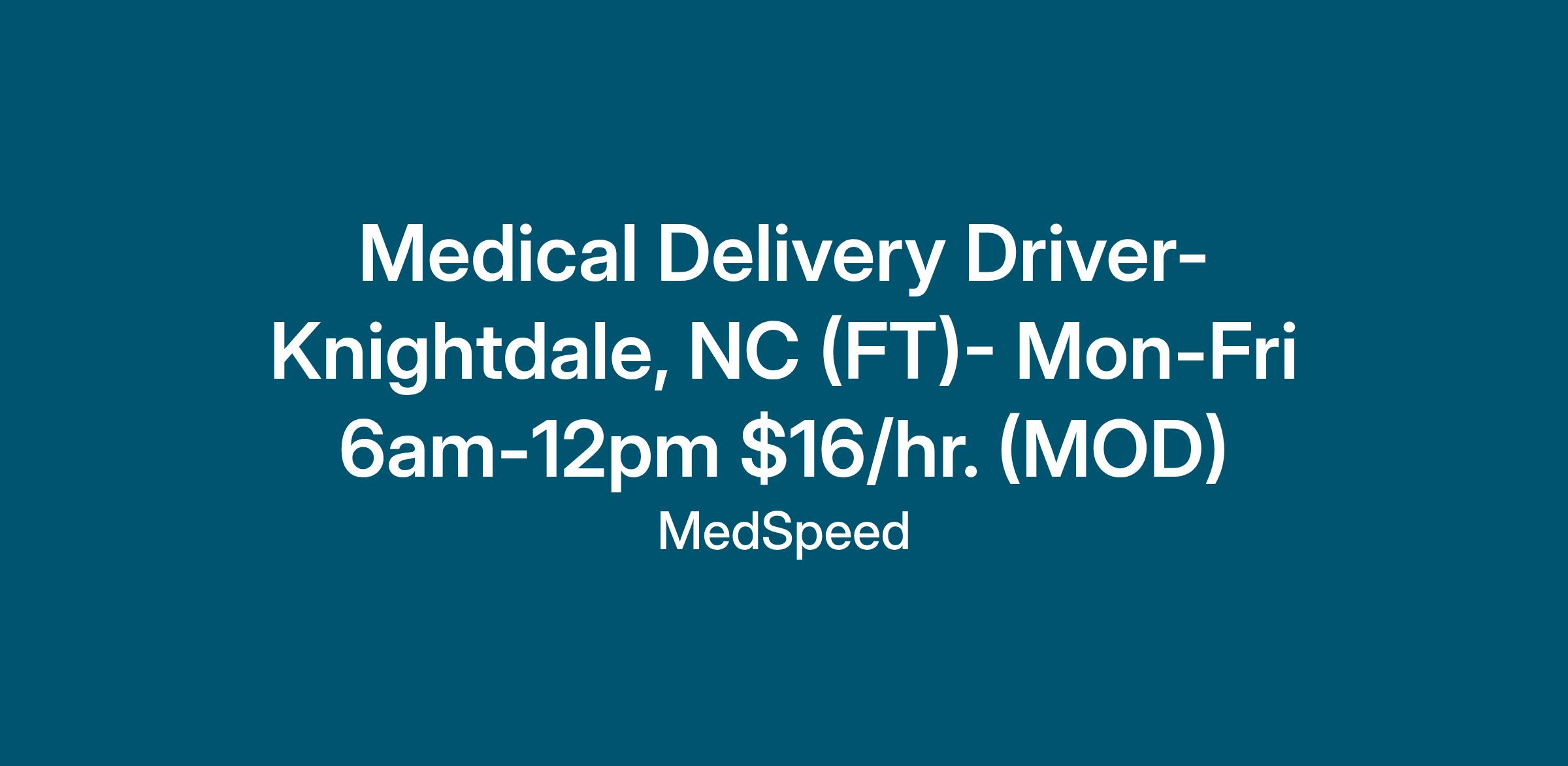 Medical Delivery Driver- Knightdale, NC (FT )-$16/hr. (MOD)