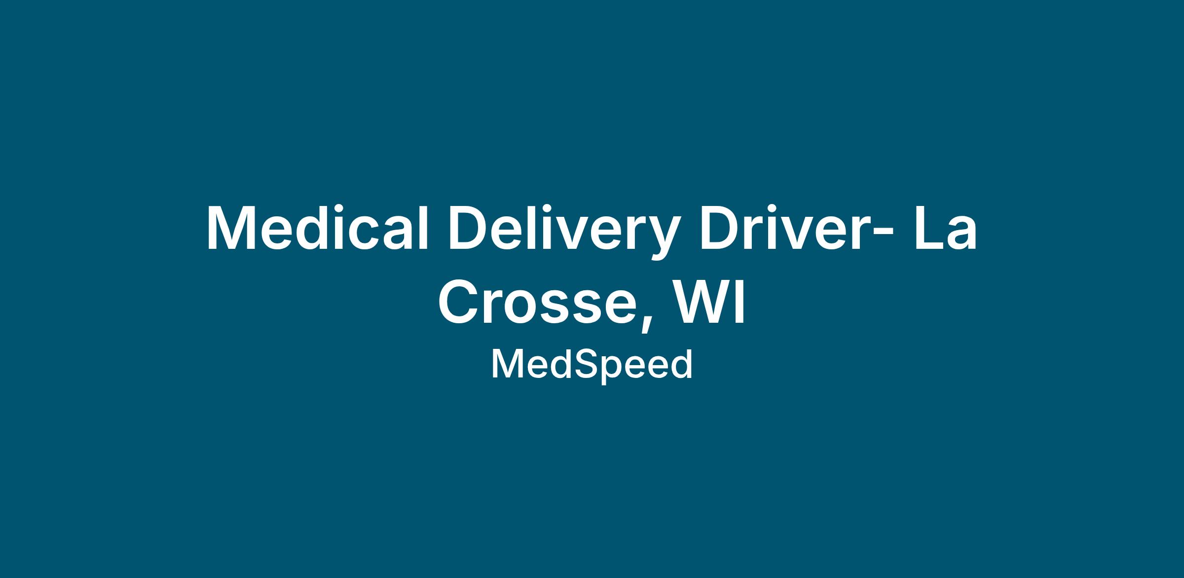 Please beware of fake job offers. MedSpeed only contacts candidates through official channels and never requests personal information outside of our secure application process. All position openings are at www.medspeed.com