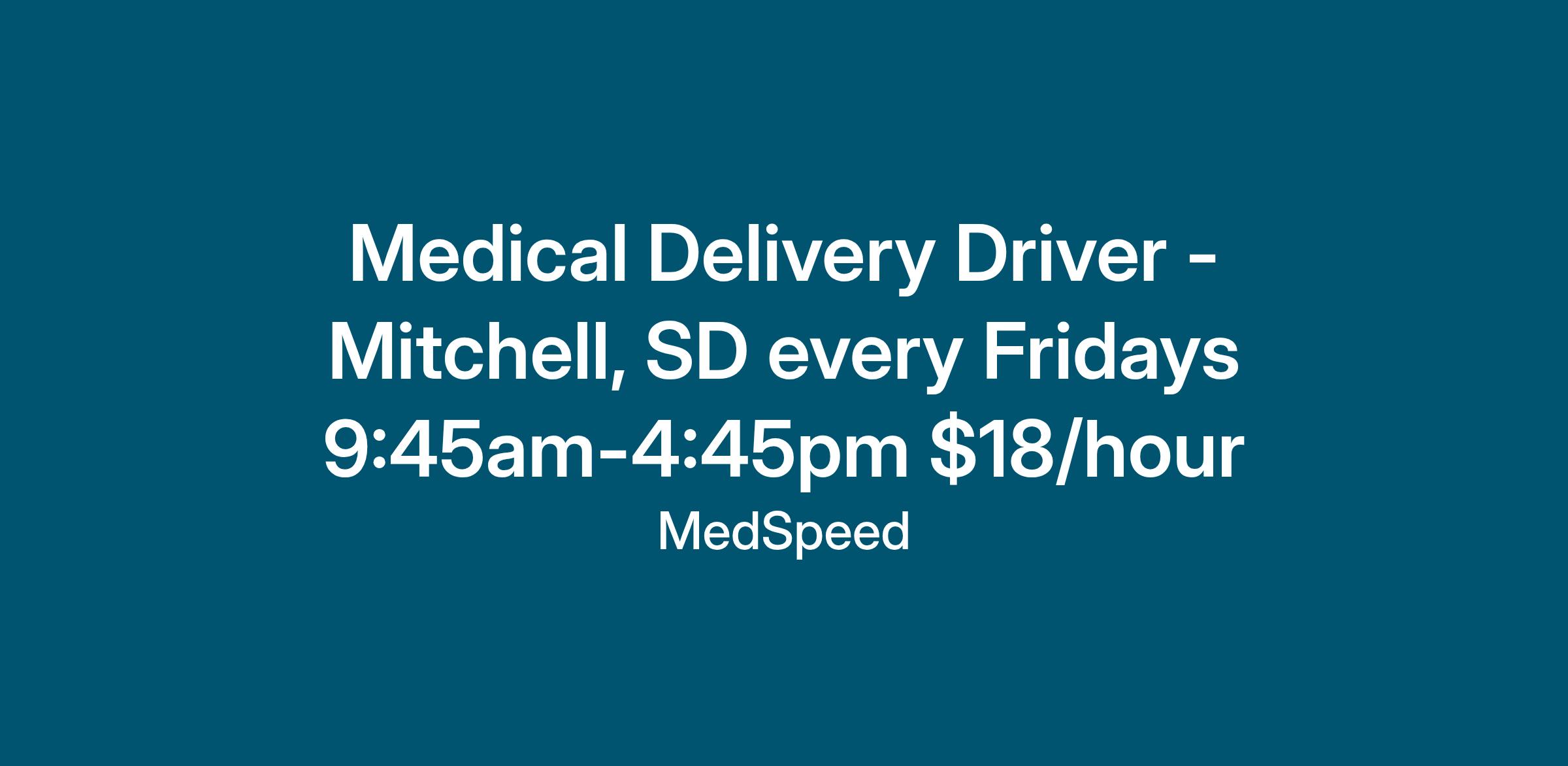Medical Driver – Mitchell - $18.00/hr. – Part Time (Fridays)