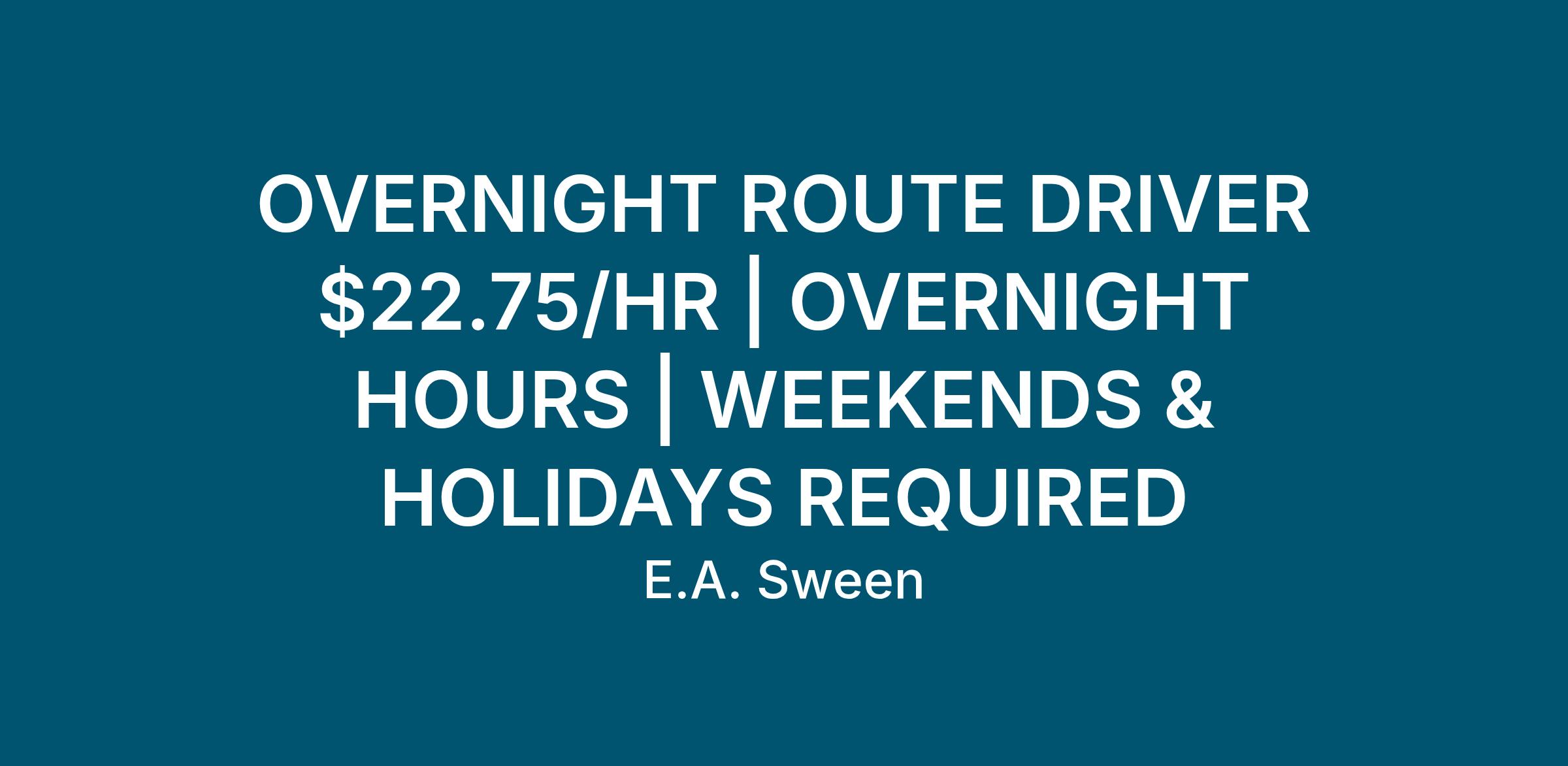 E.A. Sween is an Equal Opportunity Employer – Minority/Female/Veteran/Disability.