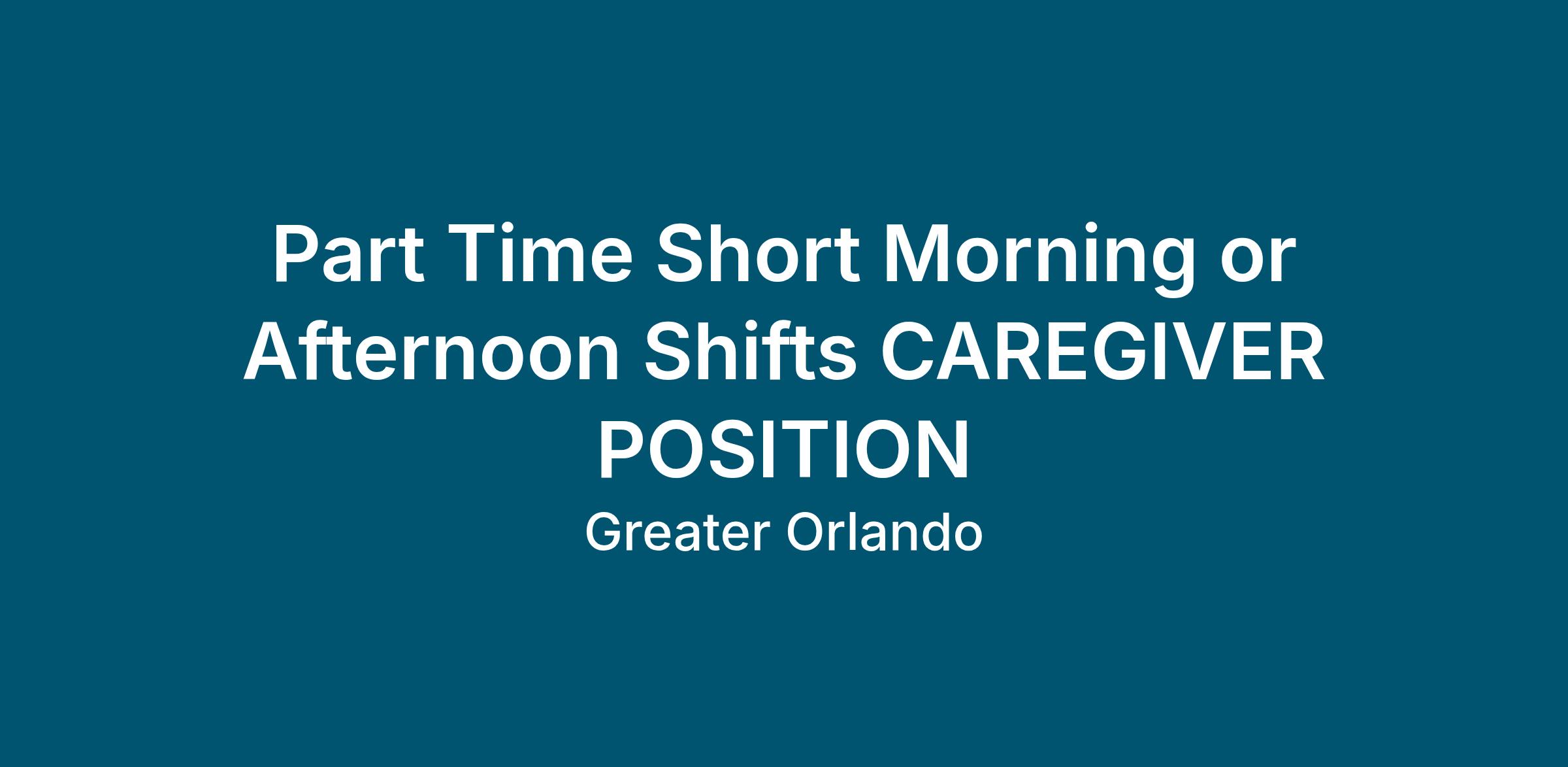 Part Time Short Morning or Afternoon Shifts CAREGIVER POSITION