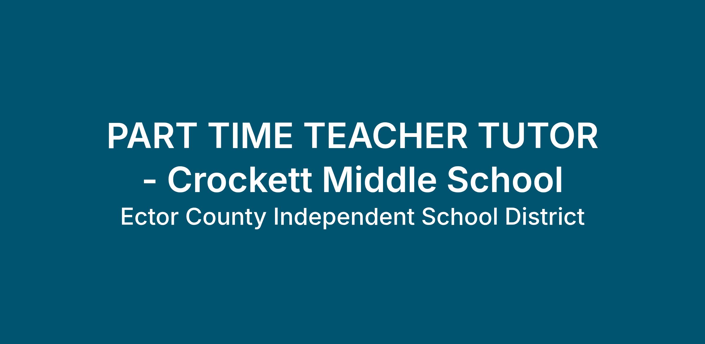 Job Title Part Time Teacher Tutor Wage/Hour Status: Hourly