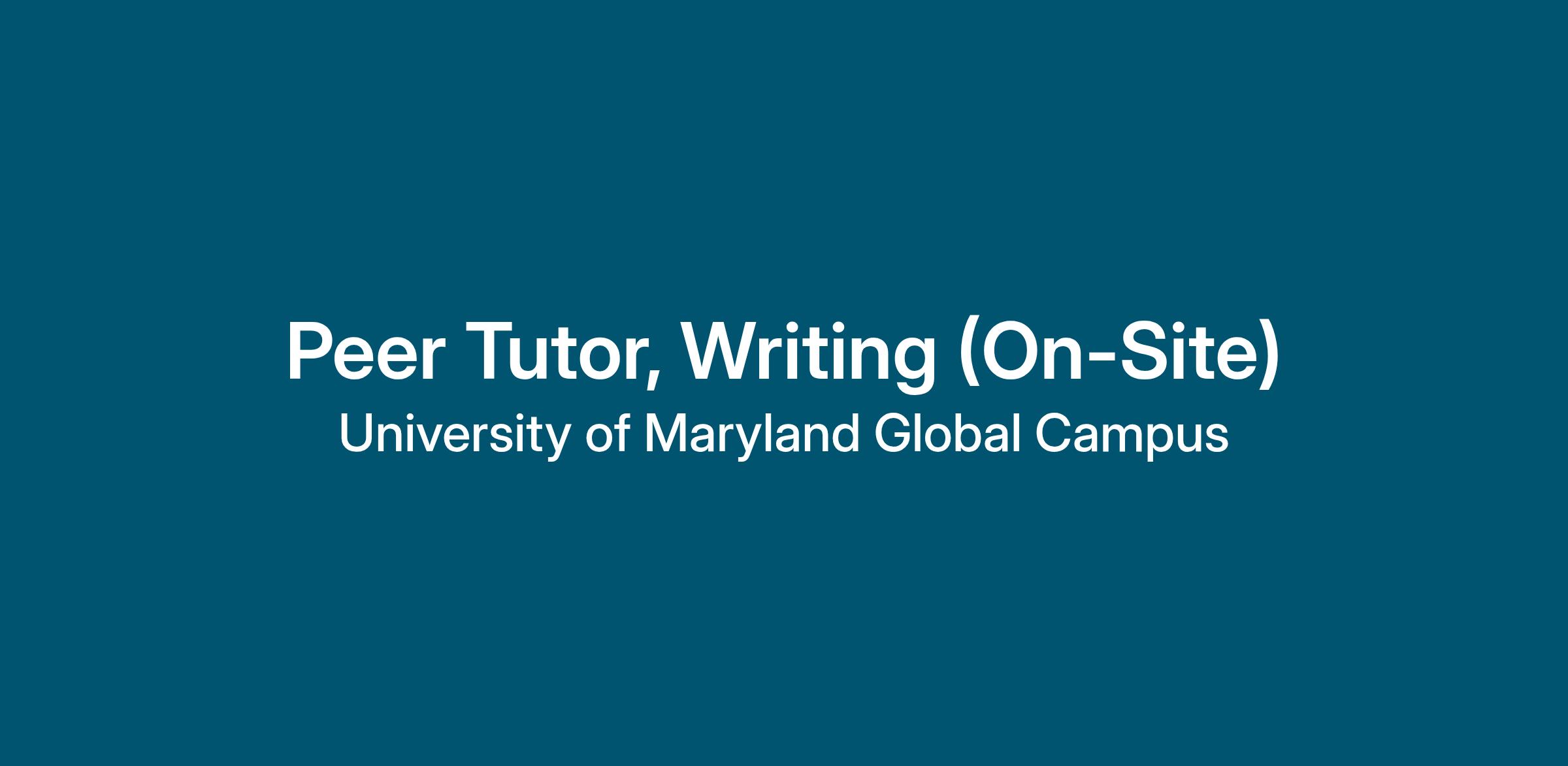 University of Maryland Global Campus (UMGC) seeks accomplished UMGC students to work on-site as part-time peer tutors for UMGC graduate and undergraduate students at UMGC San Diego. Tutoring will be offered on-site at San Diego, CA via scheduled appointment and drop-in availability. Successful candidates will demonstrate high-level skills in both academic and technical writing and be able to support students in a variety of courses and programs.