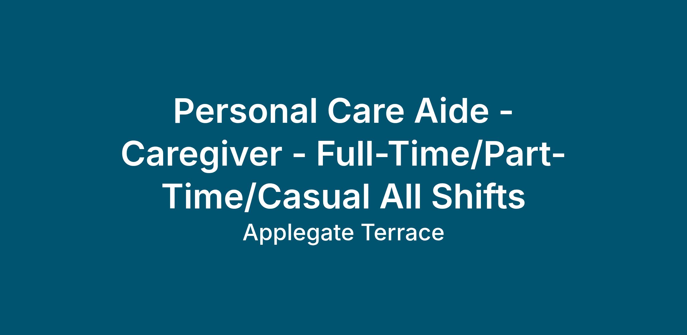 Personal Care Aide - Caregiver - Full-Time/Part-Time/Casual All Shifts
