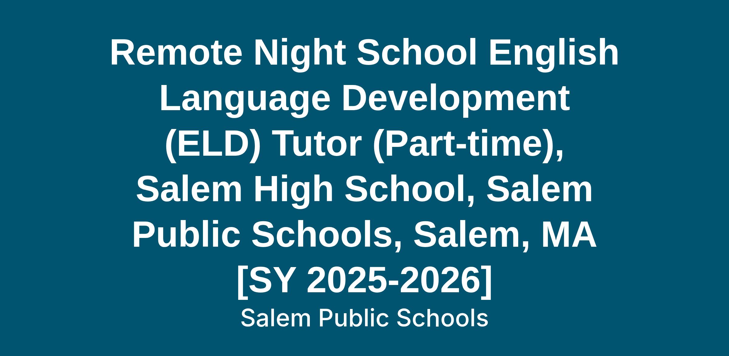 Remote Night School English Language Development (ELD) Tutor, Salem High School, Salem Public Schools, Salem, MA [SY 2025-2026]