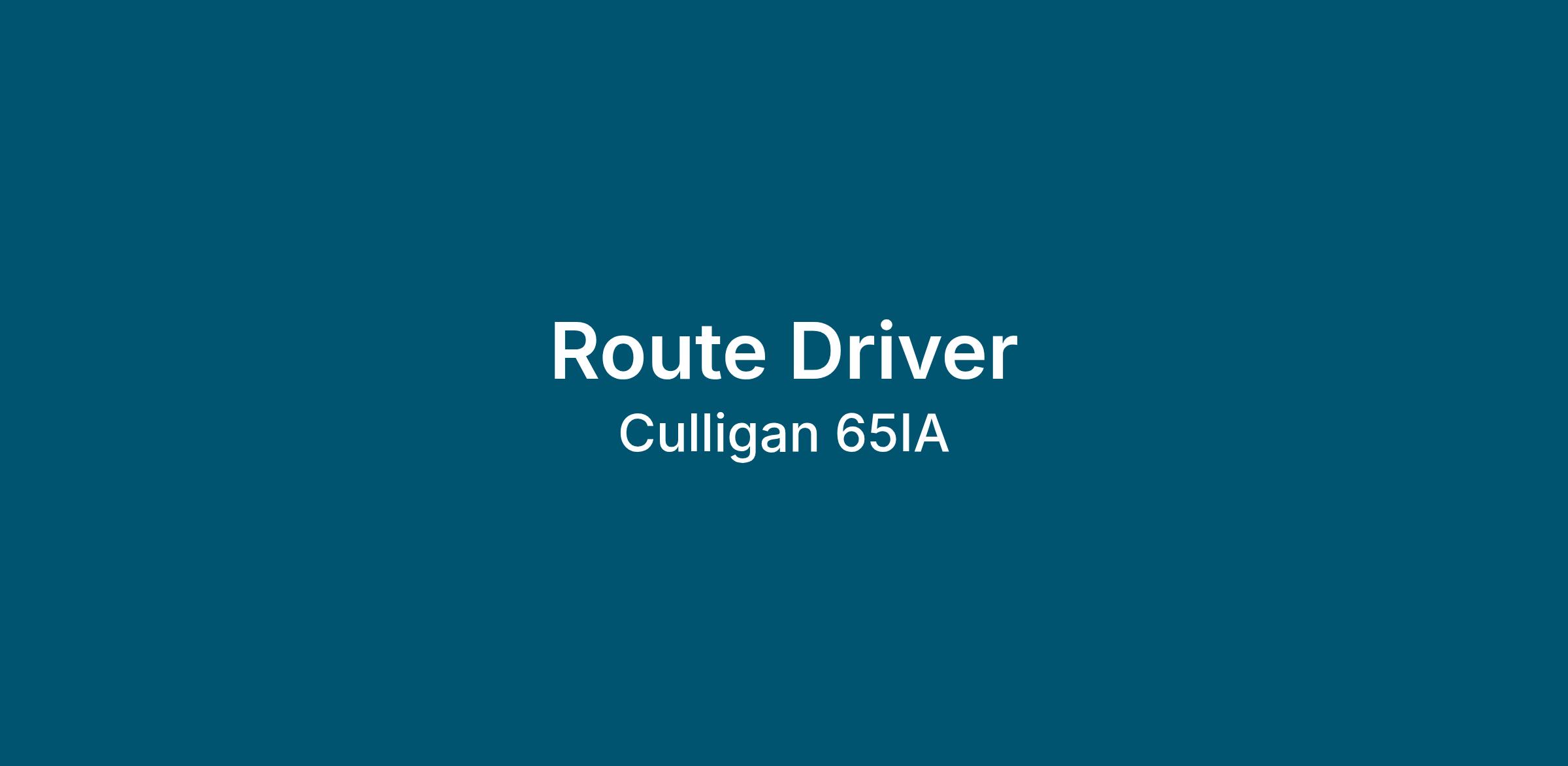 Culligan Water is currently seeking a route driver to join our team. The Route Driver performs deliveries along a specific route and handles invoicing and collections for product delivered. Additionally, drivers are expected to deliver a high degree of service that exceeds the expectations of customers.