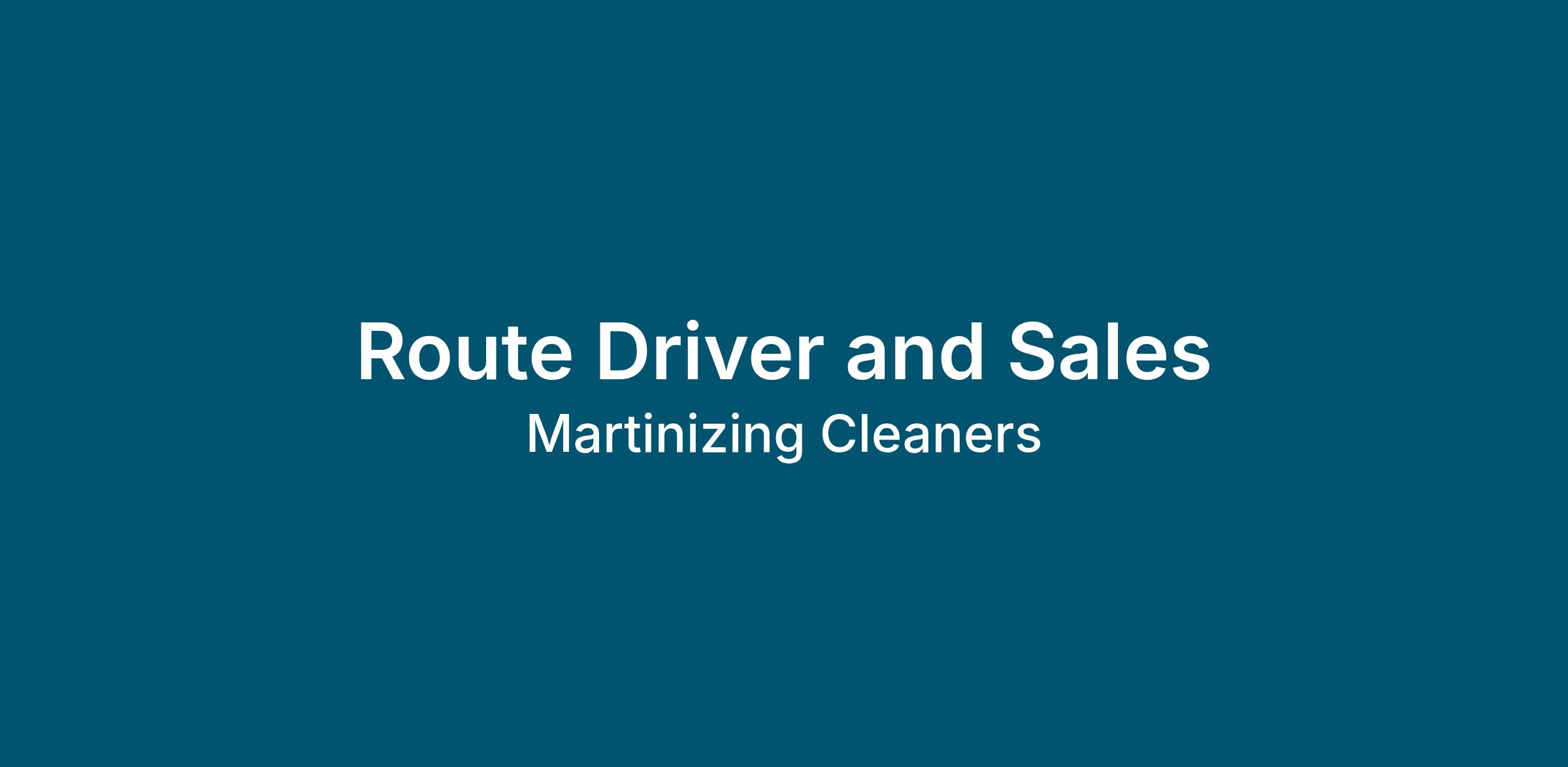 Martinizing Dry Cleaning is currently seeking an experienced Route Driver and Sales to service our home and office delivery routes. Route Driver and Sales candidates should have a clean professional appearance with exceptional customer service skills.