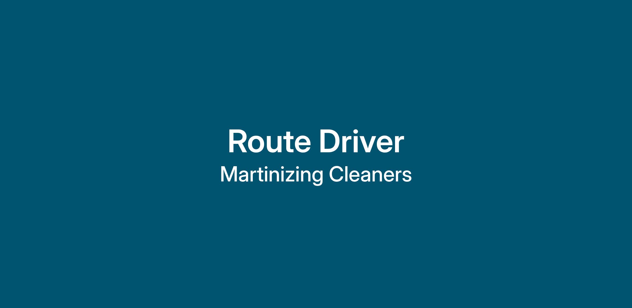 Martinizing Dry Cleaning is currently seeking an experienced route driver to service our home and office delivery routes. Route Driver candidates should have a clean professional appearance with exceptional customer service skills.