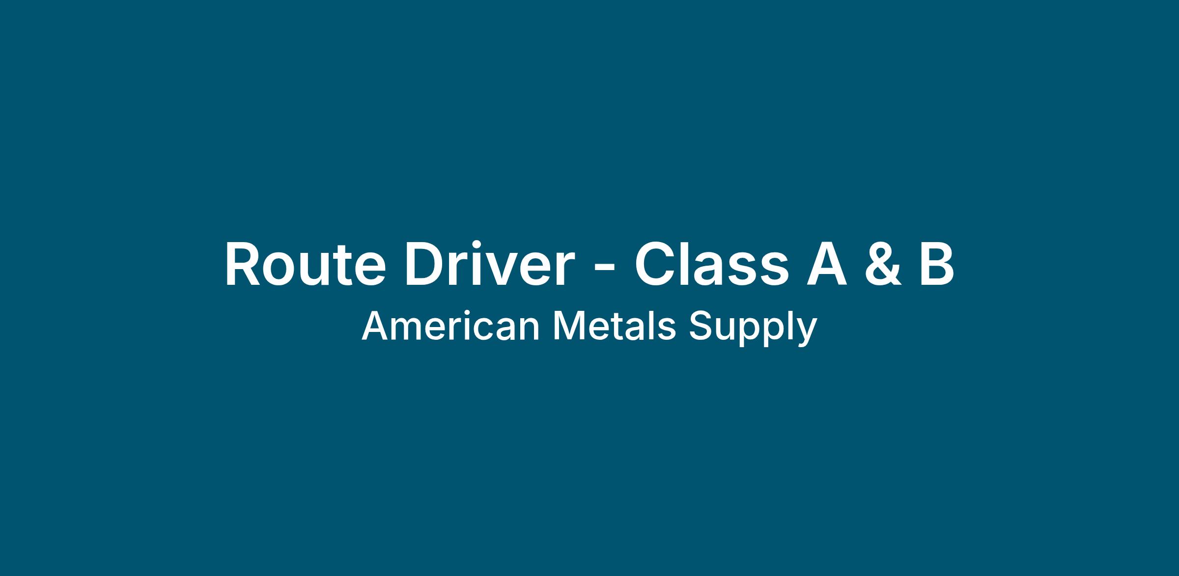 American Metals Supply is an equal employment opportunity employer and welcomes all qualified applicants. Applicants will receive fair and impartial consideration without regard to race, sex, color, religion, national origin, age, disability, veteran status, genetic data, or other legally protected status. Drug-Free Workplace.
