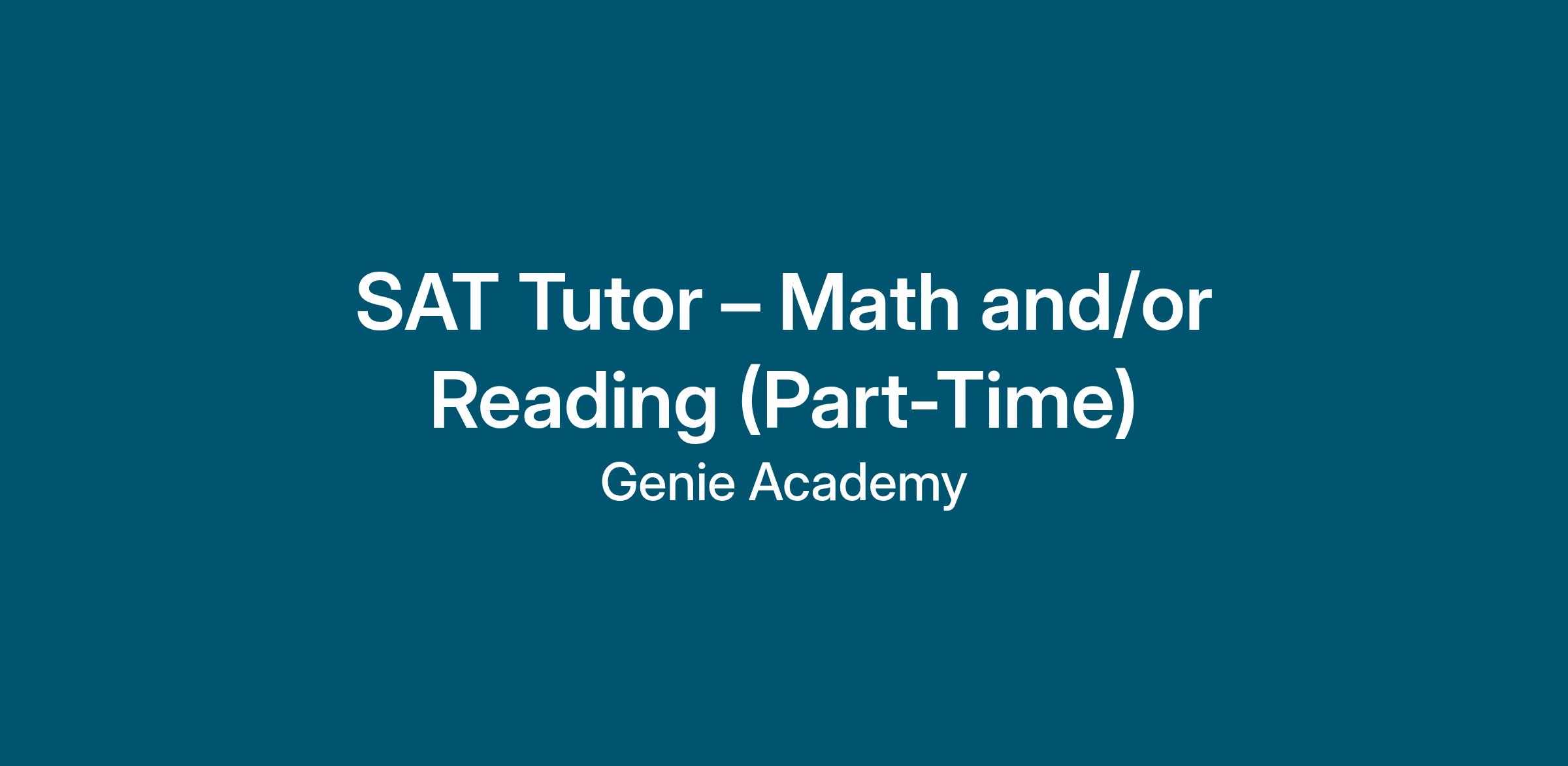 SAT Tutor - Math and/or Reading (Part-Time)