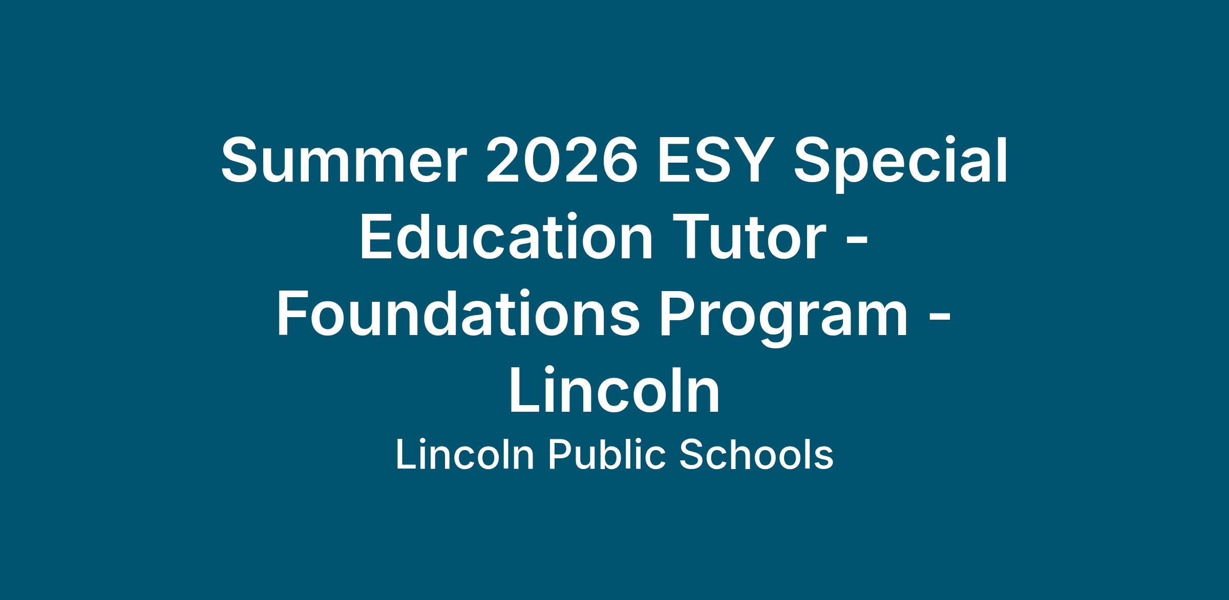Summer 2026 ESY Special Education Tutor - Foundations Program - Lincoln