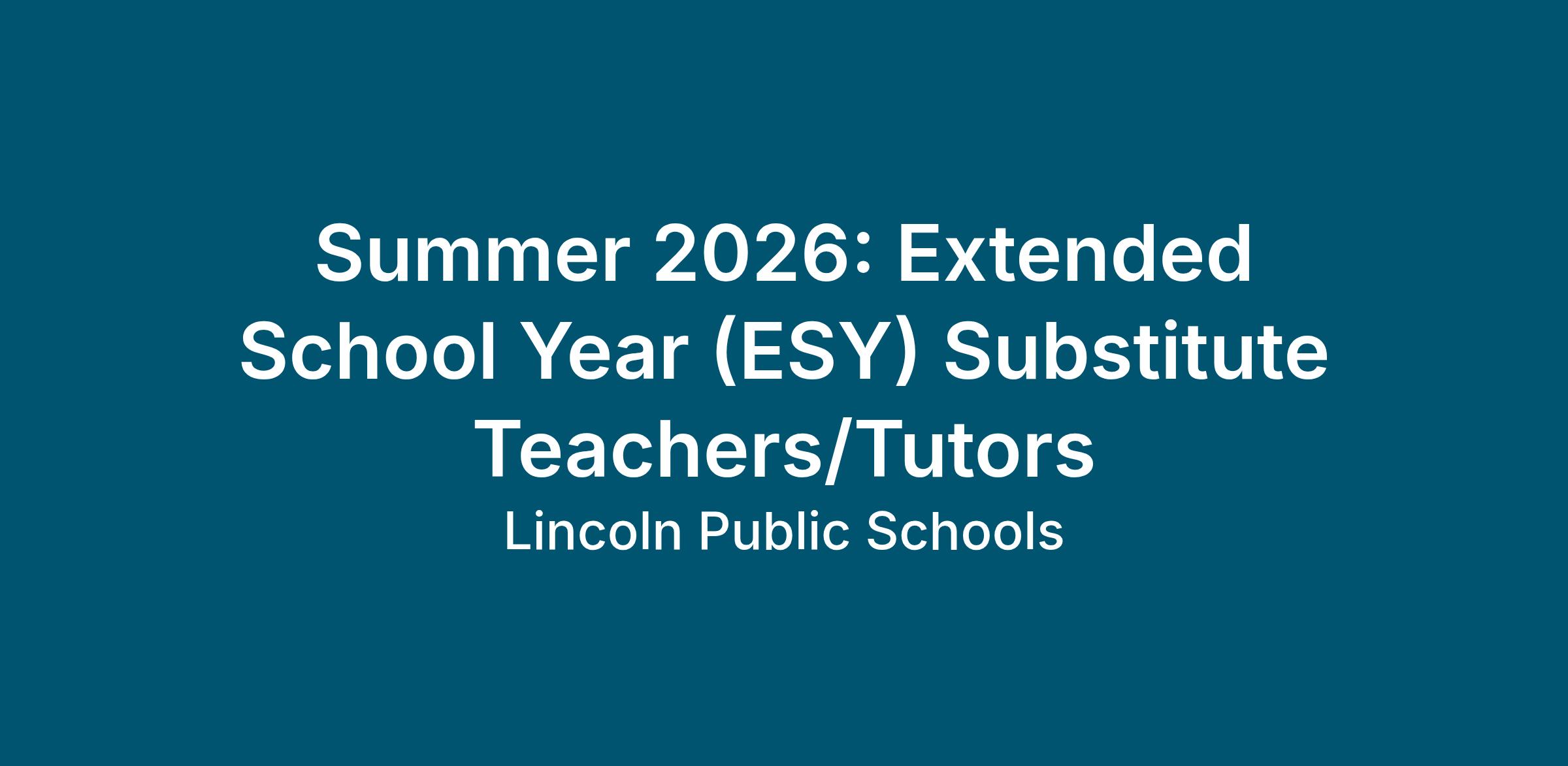 Substitute Teachers and Tutors who are hired should be available to substitute in all ESY programs between July 6 through August 6, 2026.