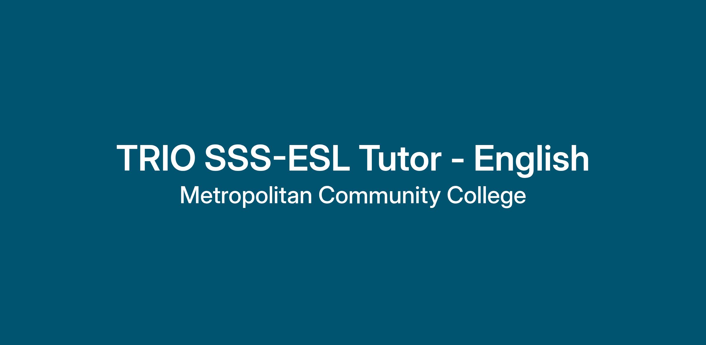 The TRIO SSS-ESL Tutor will provide English tutoring for students enrolled in the new TRIO SSS-ESL program. Tutoring will be done individually and/or in groups. Tutors will support students with their grammar, writing, and thought processes within their English and English as a Second Language (ESLX) courses.Provide English tutoring services for TRIO SSS-ESL participants.