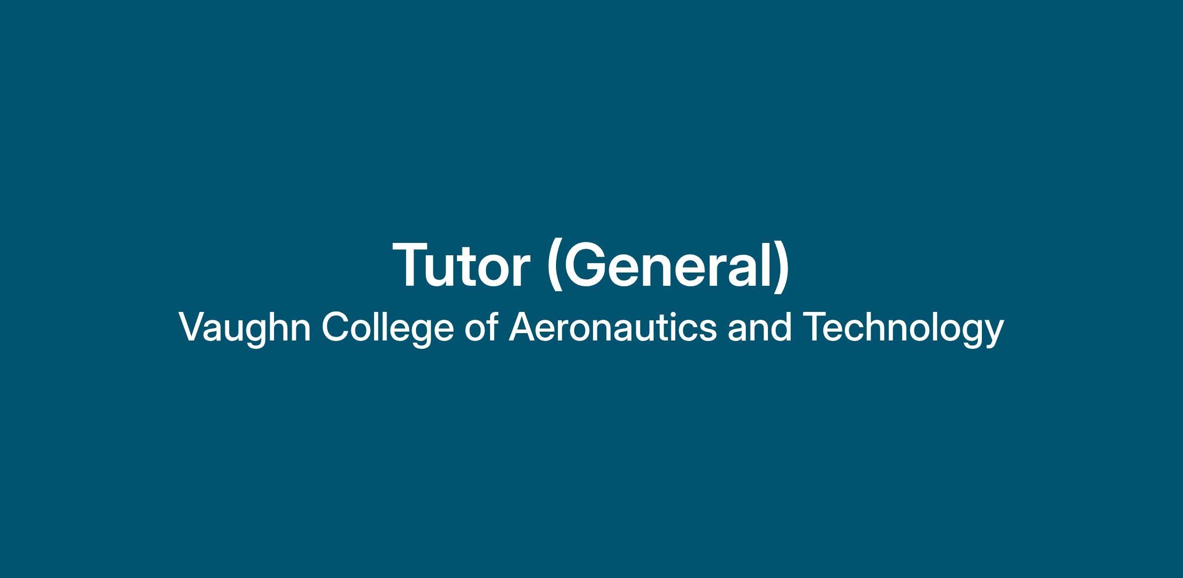 General Tutors provide academic instruction in one-on-one and small group settings to reinforce content of a particular disciplinary area. This announcement is for the following disciplines: Engineering, Flight, ATI, or Management. This position is available to current Vaughn students only.