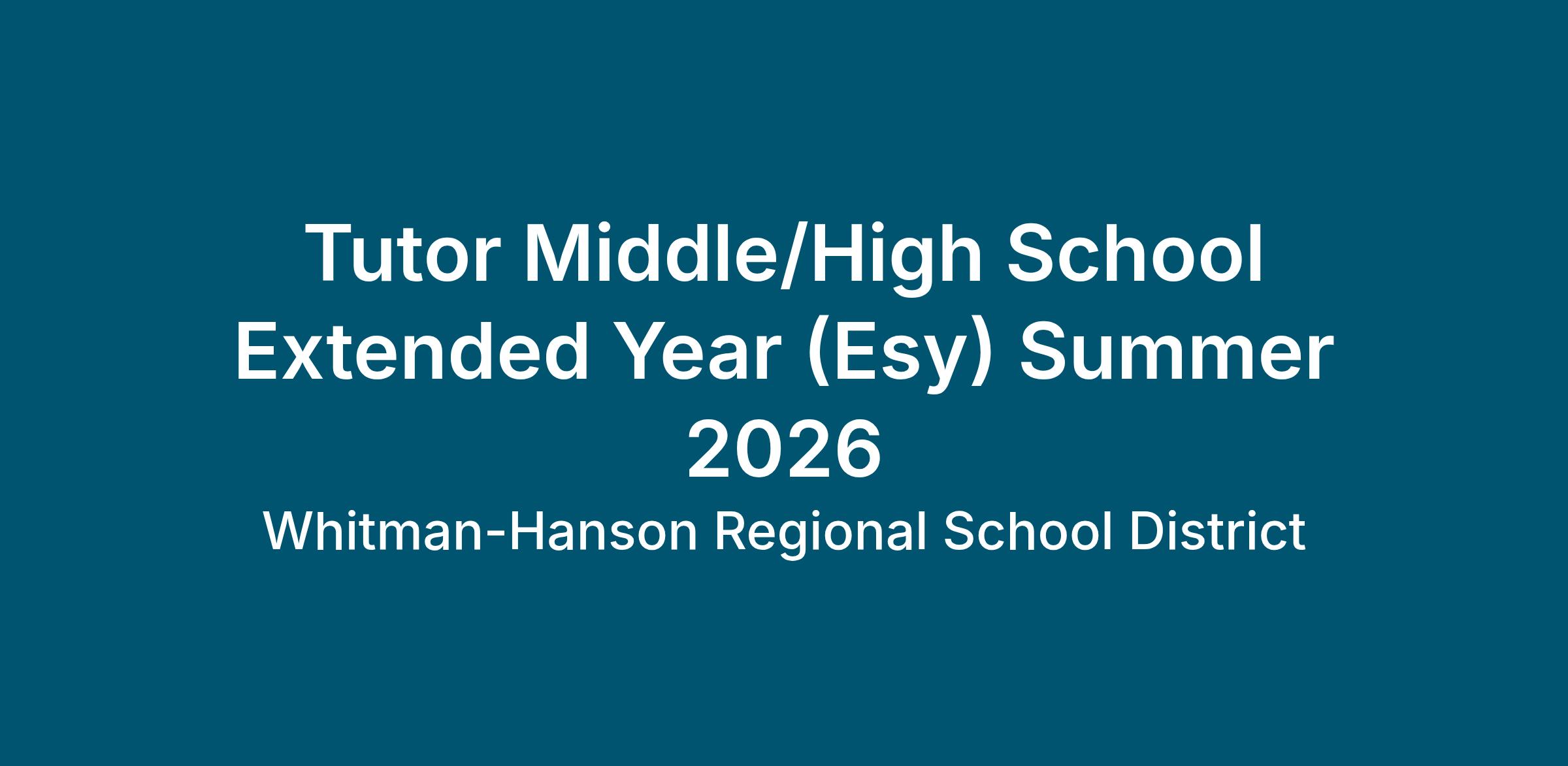 2026 Special Education Extended School Year (ESY) Program