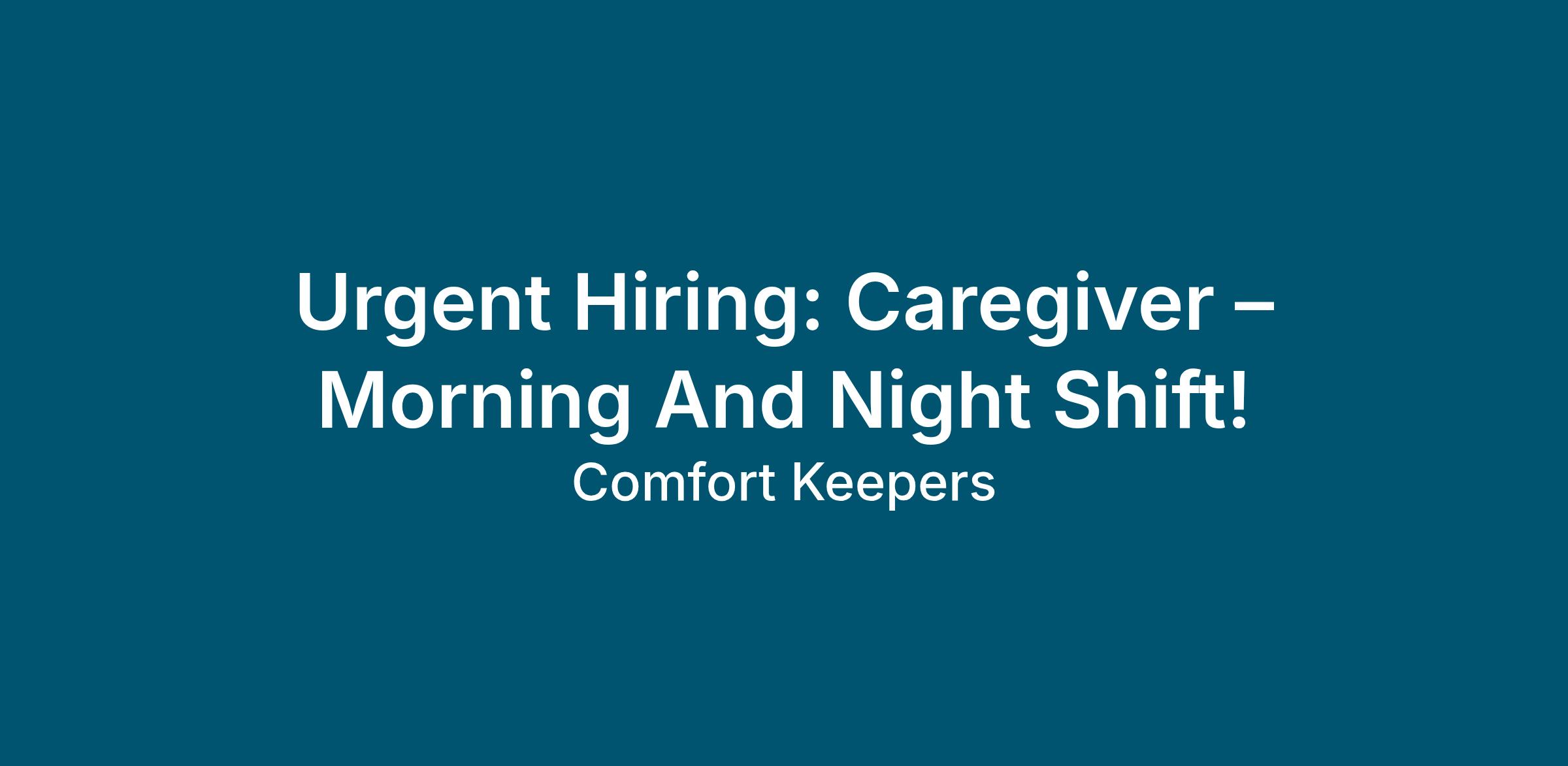 Urgent Hiring: Caregiver – Morning And Night Shift!