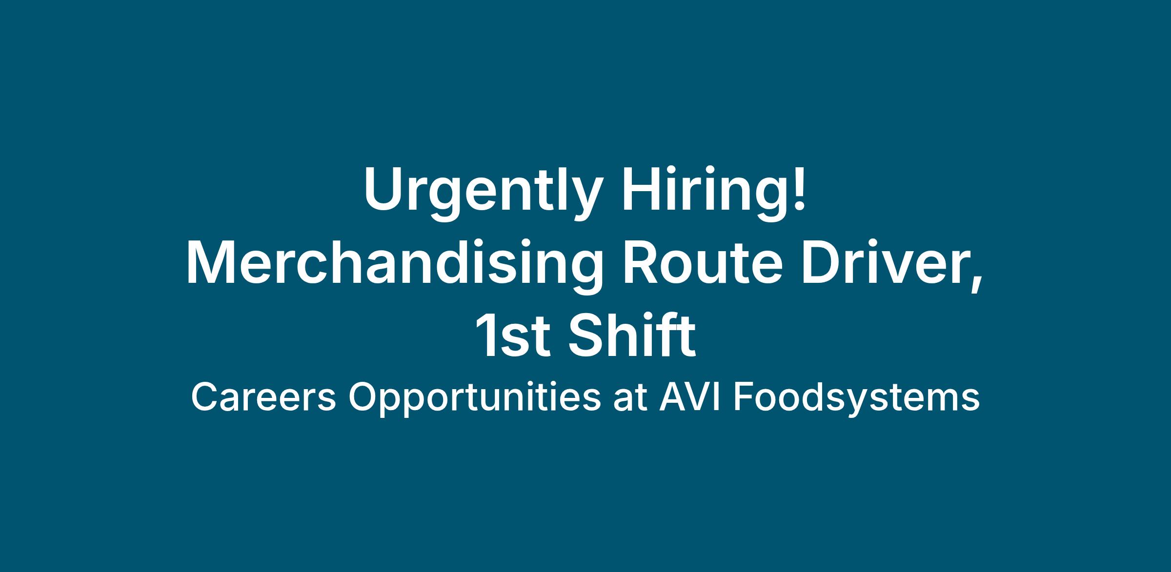 AVI Foodsystems is looking for a friendly and hard-working team member to fill the role of Merchandising Route Driver. This position works Monday-Friday 5am-2:30pm.