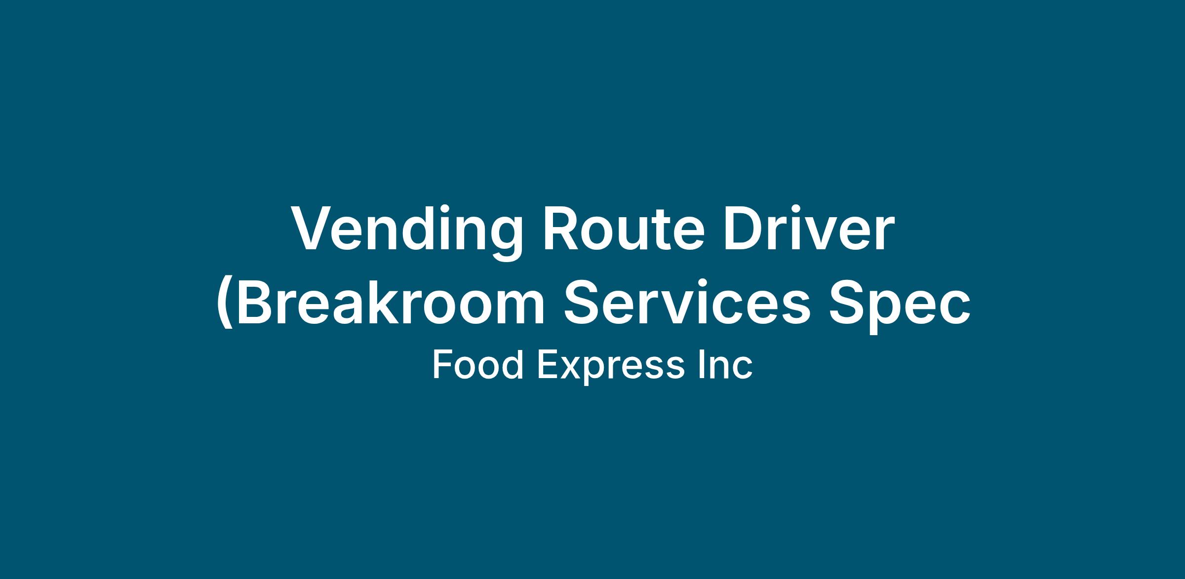 Job Title: Breakroom Service Representatives (Vending Route Driver)